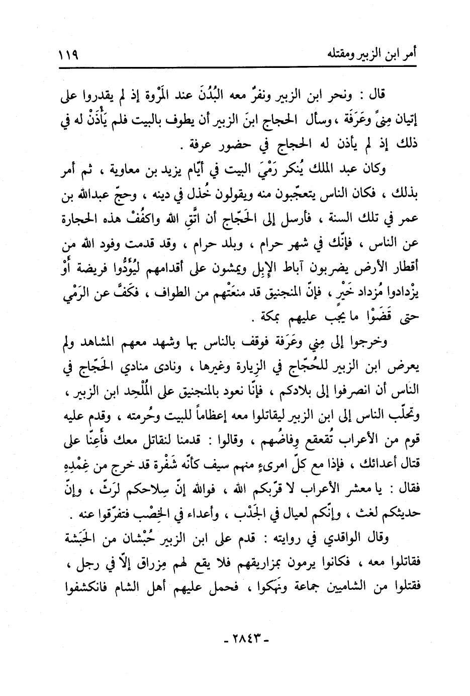 قَالَ: ونحر ابْن الزُّبَيْرِ ونفر مَعَهُ البدن عند المروة إذ لم يقدروا عَلَى إتيان منى وعرفة، وسأل الحجاج ابْن الزُّبَيْرِ أن يطوف بالبيت فلم يأذن لَهُ فِي ذَلِكَ إذ لم يأذن لَهُ الحجاج فِي حضور عرفة.