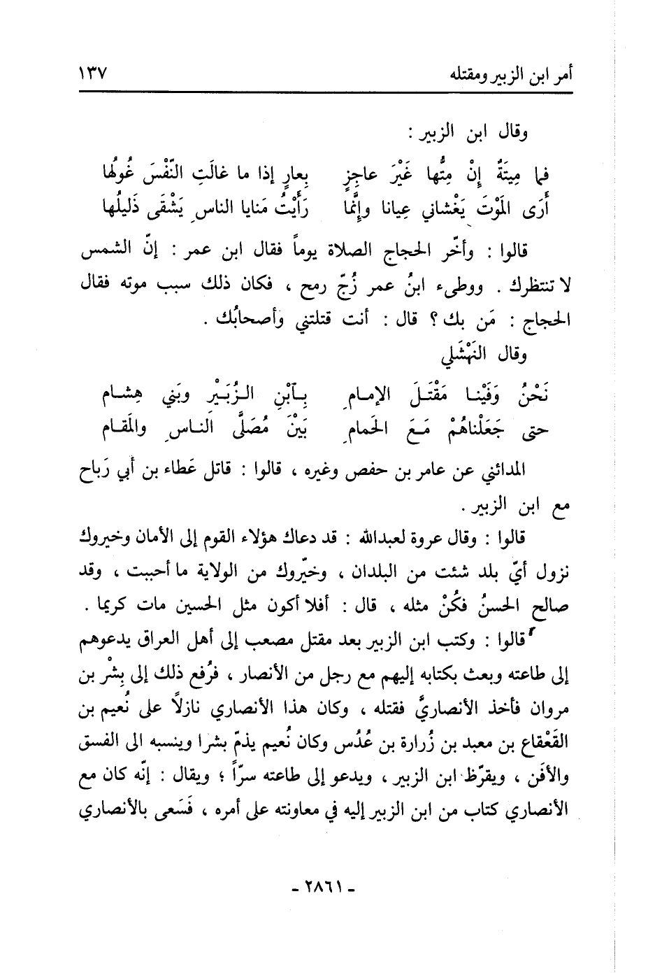 نحن وفينا مقتل الإمام ... بابن الزُّبَيْر وبني هِشَام