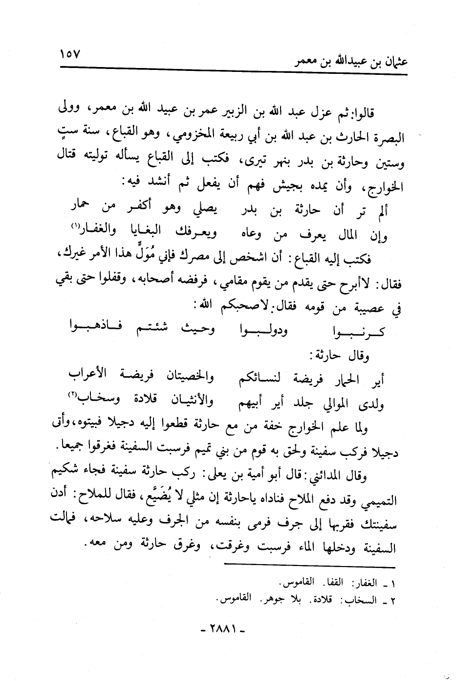 [1] فكتب إِلَيْهِ القباع: أن اشخص إِلَى مصرك فإني مول هذا الأمر غيرك، فَقَالَ: لا أبرح حَتَّى يقدم من يقوم مقامي، فرفضه أصحابه، وقفلوا حَتَّى بقي فِي عصيبة من قومه فَقَالَ: لا صحبكم اللَّه: