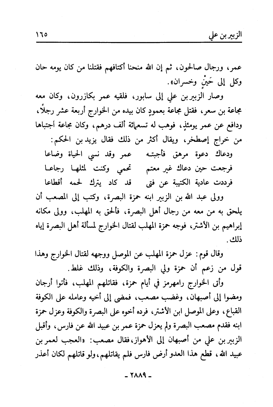 وصار الزُّبَيْر بْن علي إِلَى سابور، فلقيه عمر بكازرون، وَكَانَ مَعَهُ مجاعة بْن سعر، فقتل مجاعة بعمود كَانَ بيده من الخوارج أربعة عشر رجلا، ودافع عَن عمر يومئذ، فوهب لَهُ تسعمائة ألف درهم، وَكَانَ مجاعة اجتباها من خراج إصطخر، ويقال أكثر من ذَلِكَ فَقَالَ يَزِيد بْن الحكم: