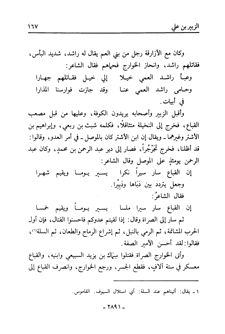 وَكَانَ مَعَ الأزارقة رجل من بني العم يقال لَهُ راشد، شديد البأس، فقاتلهم راشد، وانحاز الخوارج فحماهم فَقَالَ الشاعر:
