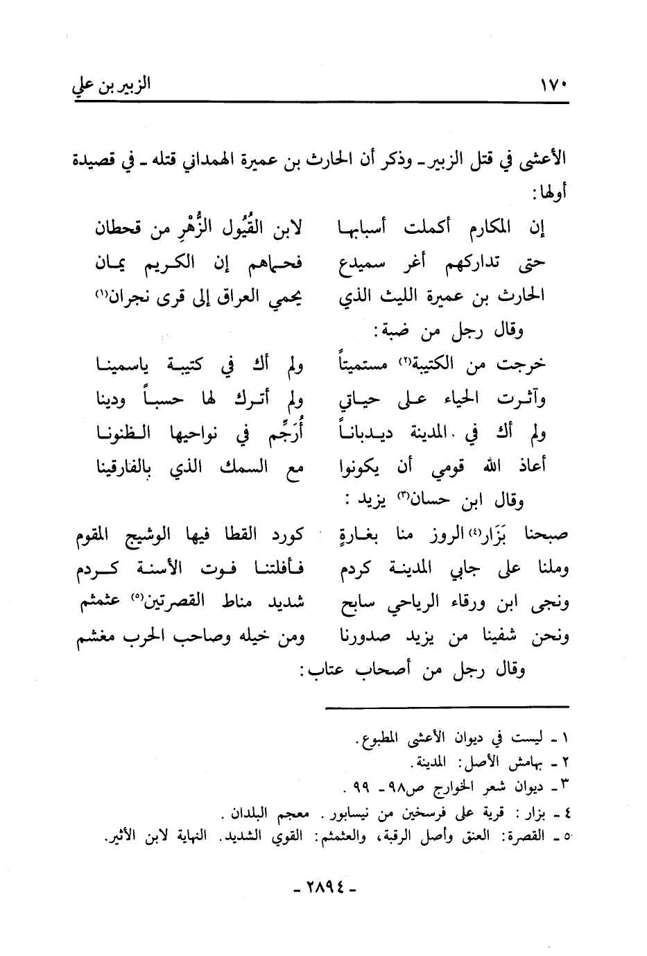 الأعشى فِي قتل الزُّبَيْر- وذكر أن الحارث بْن عميرة الهمداني قتله- فِي قصيدة أولها: