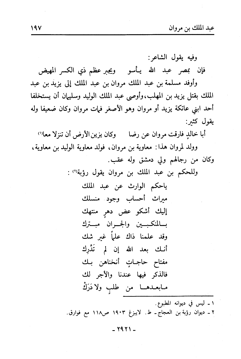 [1] وولد لمروان هذا: مُعَاوِيَة بْن مروان، فولد مُعَاوِيَة الوليد بْن مُعَاوِيَةَ، وَكَانَ من رجالهم ولي دمشق وله عقب.