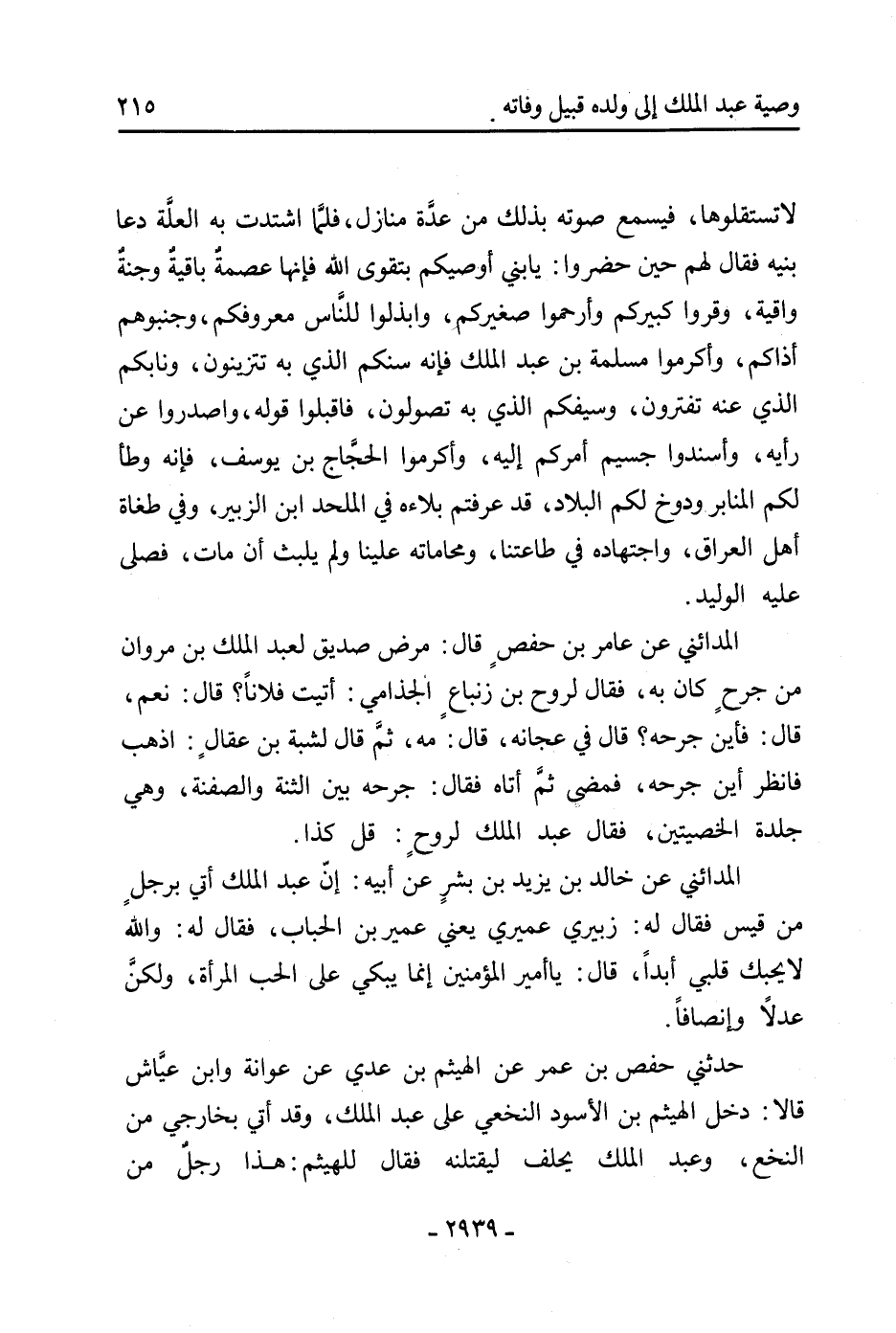 [وصية عبد الملك إلى ولده قبيل وفاته]