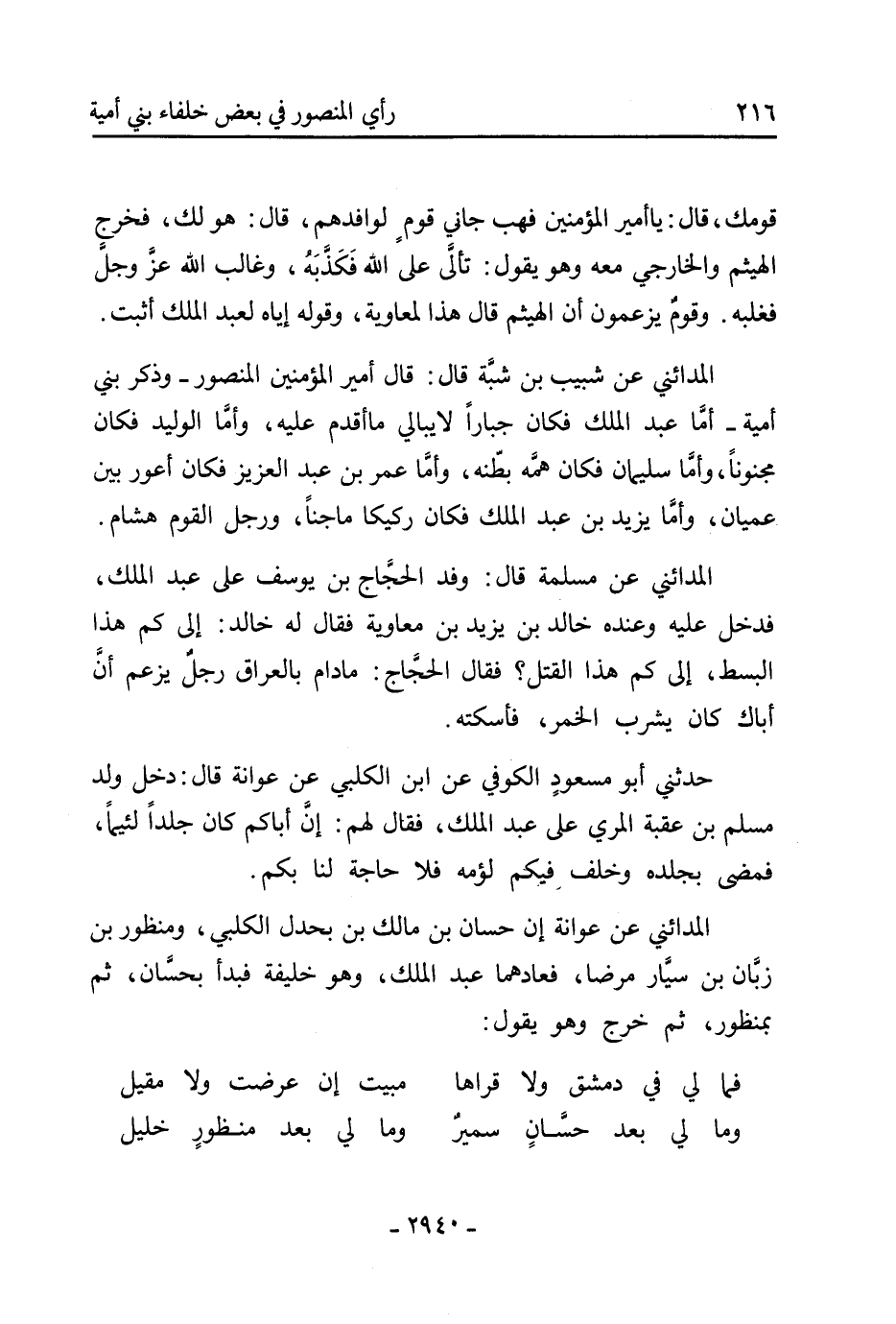 [رأي المنصور في بعض خلفاء بني أمية]