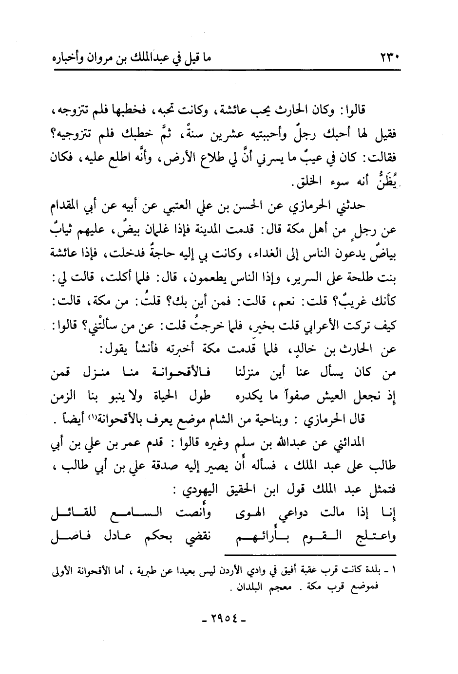 عَن الحارث بْن خالد، فلما قدمت مَكَّة أخبرته فأنشأ يقول: