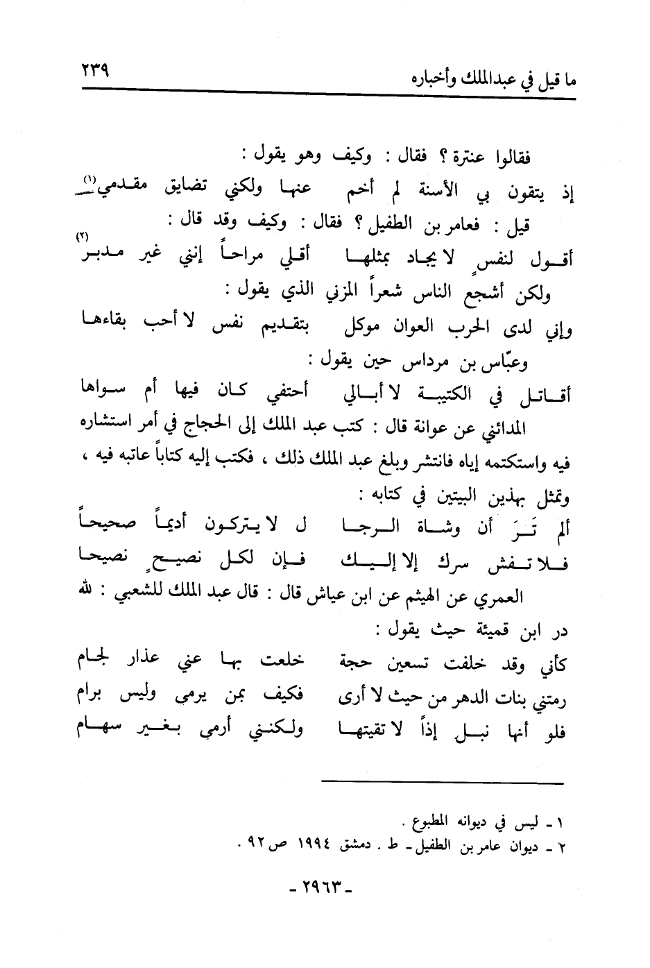 [2] ديوان عامر بن الطفيل- ط. دمشق 1994 ص 92.