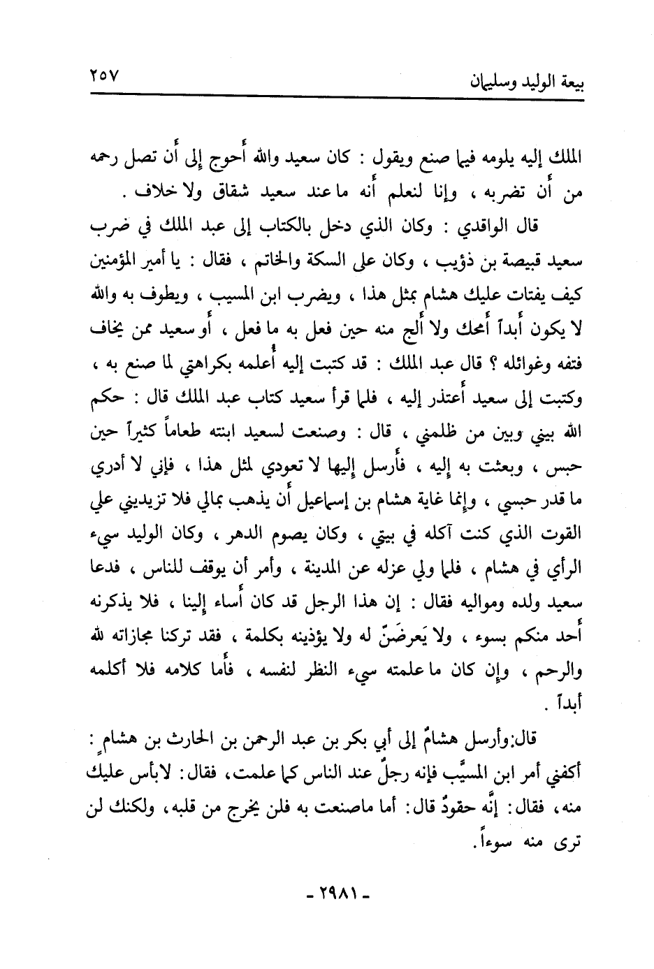 الْمَلِكِ إِلَيْهِ يلومه فيما صنع ويقول: كَانَ سعيد والله أحوج إِلَى أن تصل رحمه من أن تضربه، وإنا لنعلم أنه مَا عند سعيد شقاق ولا خلاف.
