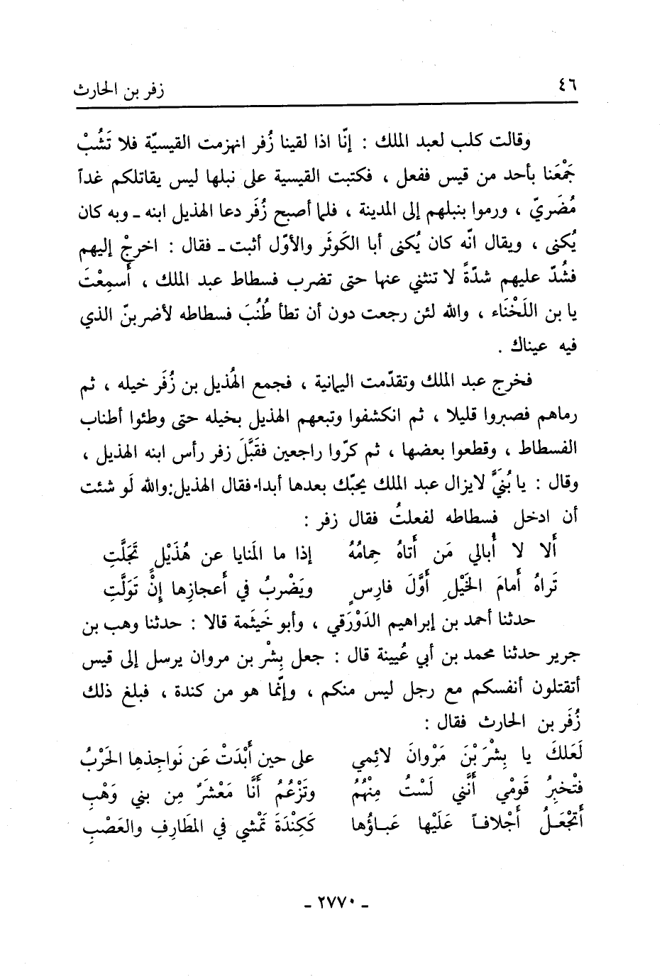 حَدَّثَنَا أَحْمَد بن إبراهيم الدورقي، وَأَبُو خَيْثَمَةَ قَالا: حَدَّثَنَا وَهْبُ بْنُ جَرِيرِ حدثنا محمد بن أبي عيينة قَالَ: جعل بشر بْن مروان يرسل إِلَى قيس أتقتلون أنفسكم مَعَ رجل ليس منكم، وإنما هو من كندة، فبلغ ذَلِكَ زفر بْن الحارث فَقَالَ: