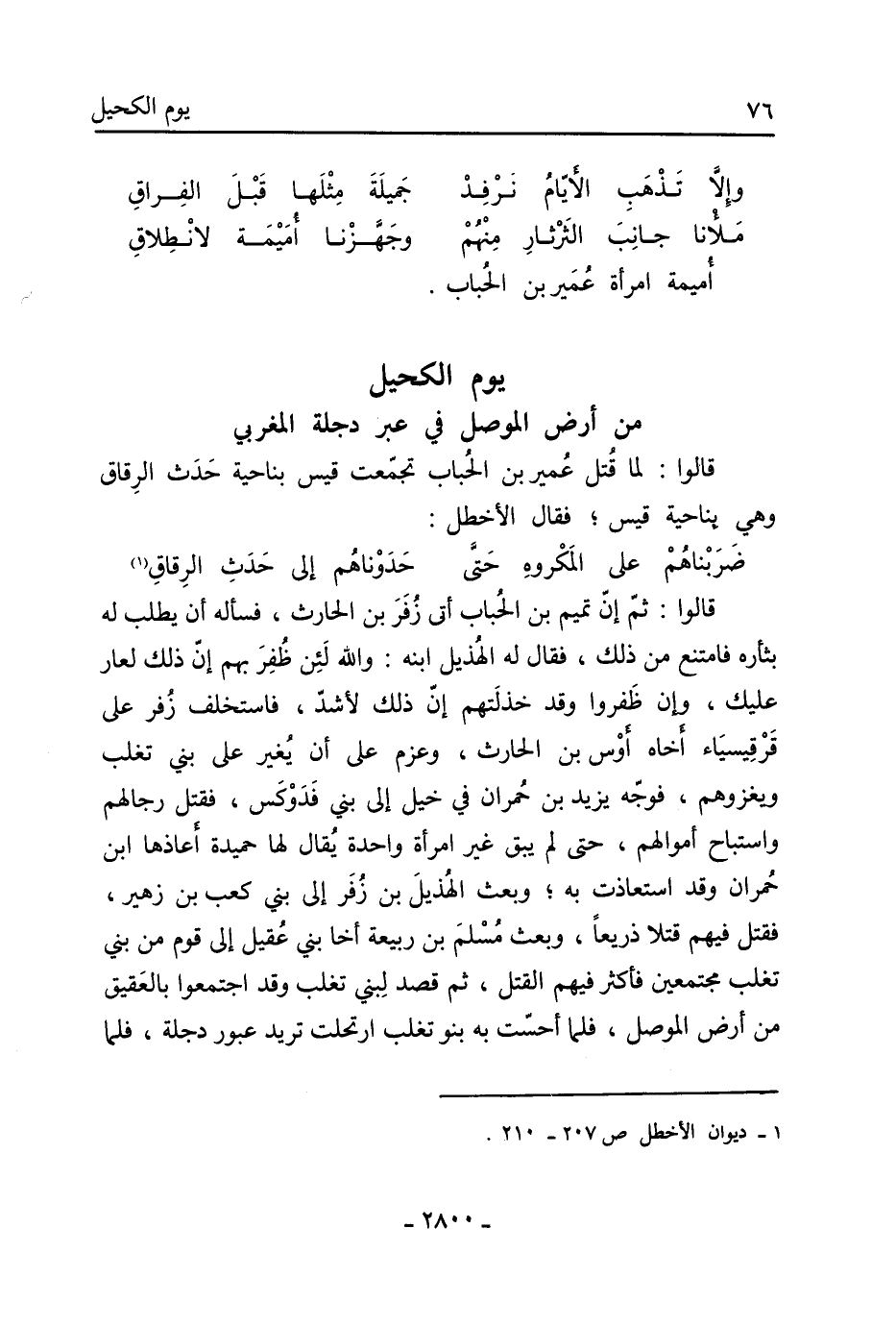 قالوا: لما قتل عمير بْن الحباب تجمعت قيس بناحية حدث الرقاق وهي بناحية قيس، فَقَالَ الأخطل:
