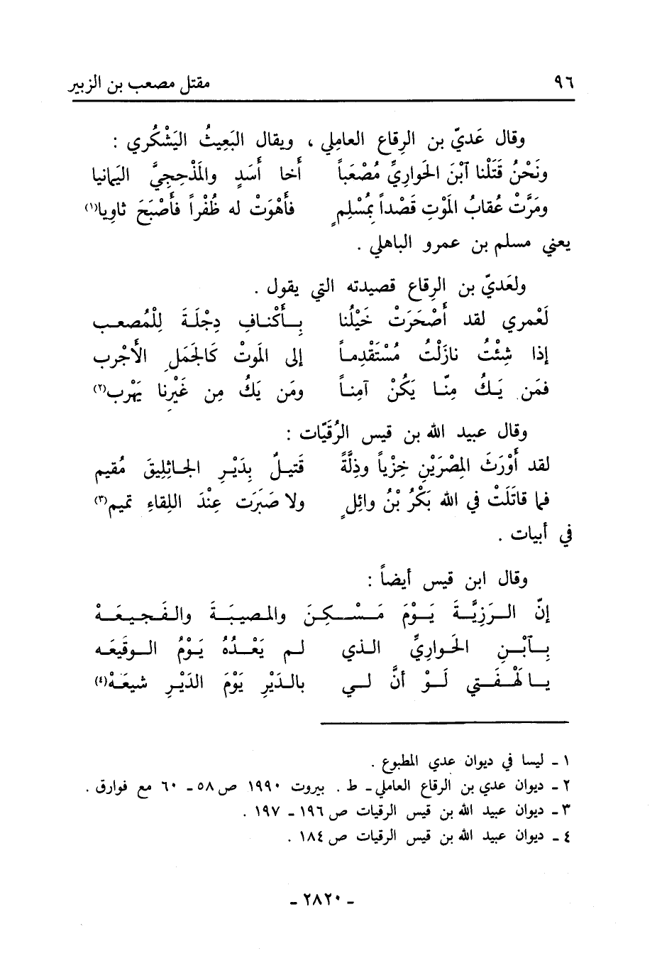 [4] ديوان عبيد الله بن قيس الرقيات ص 184.
