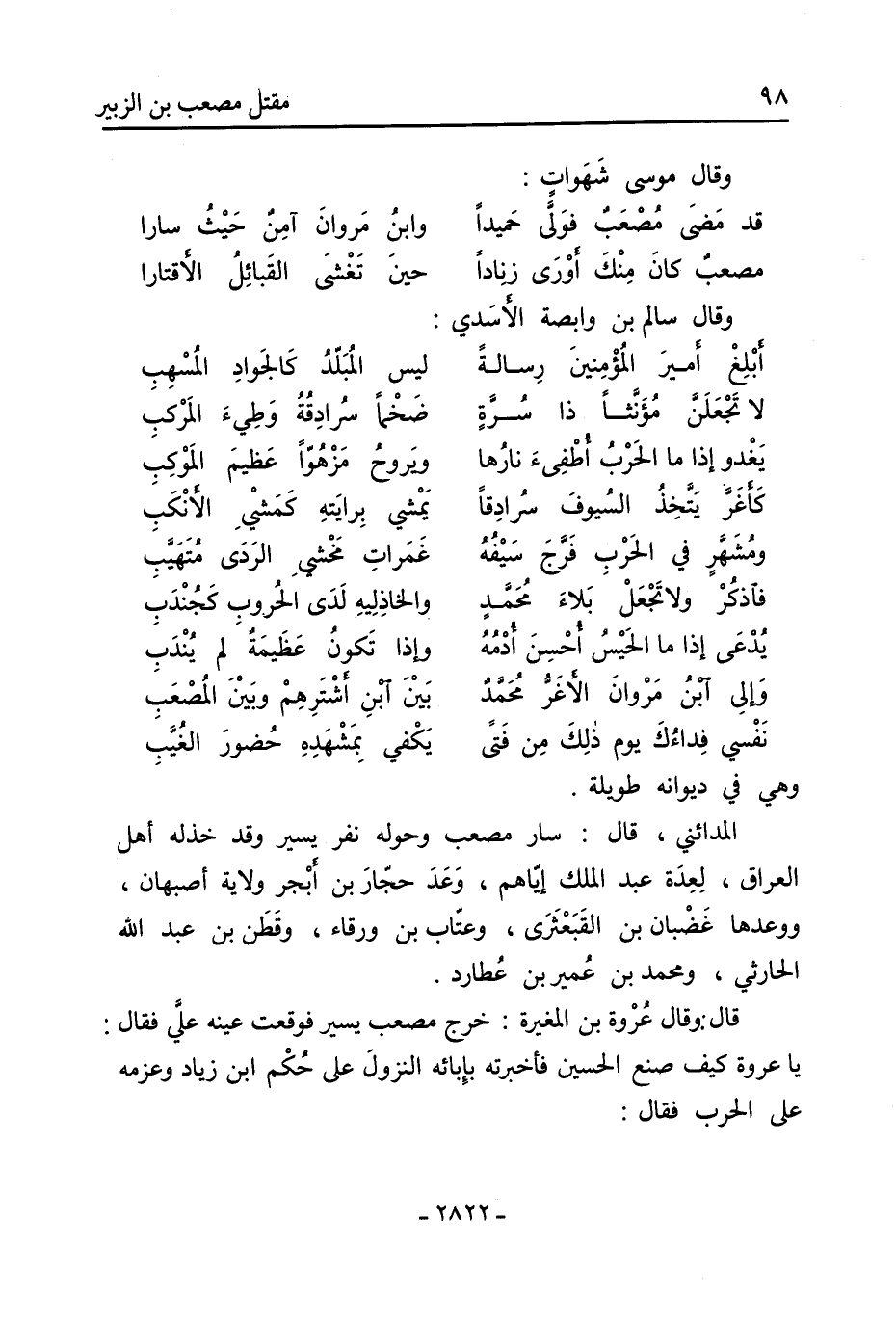 قد مضى مصعب فولى حميدا ... وابن مروان آمن حيث سارا