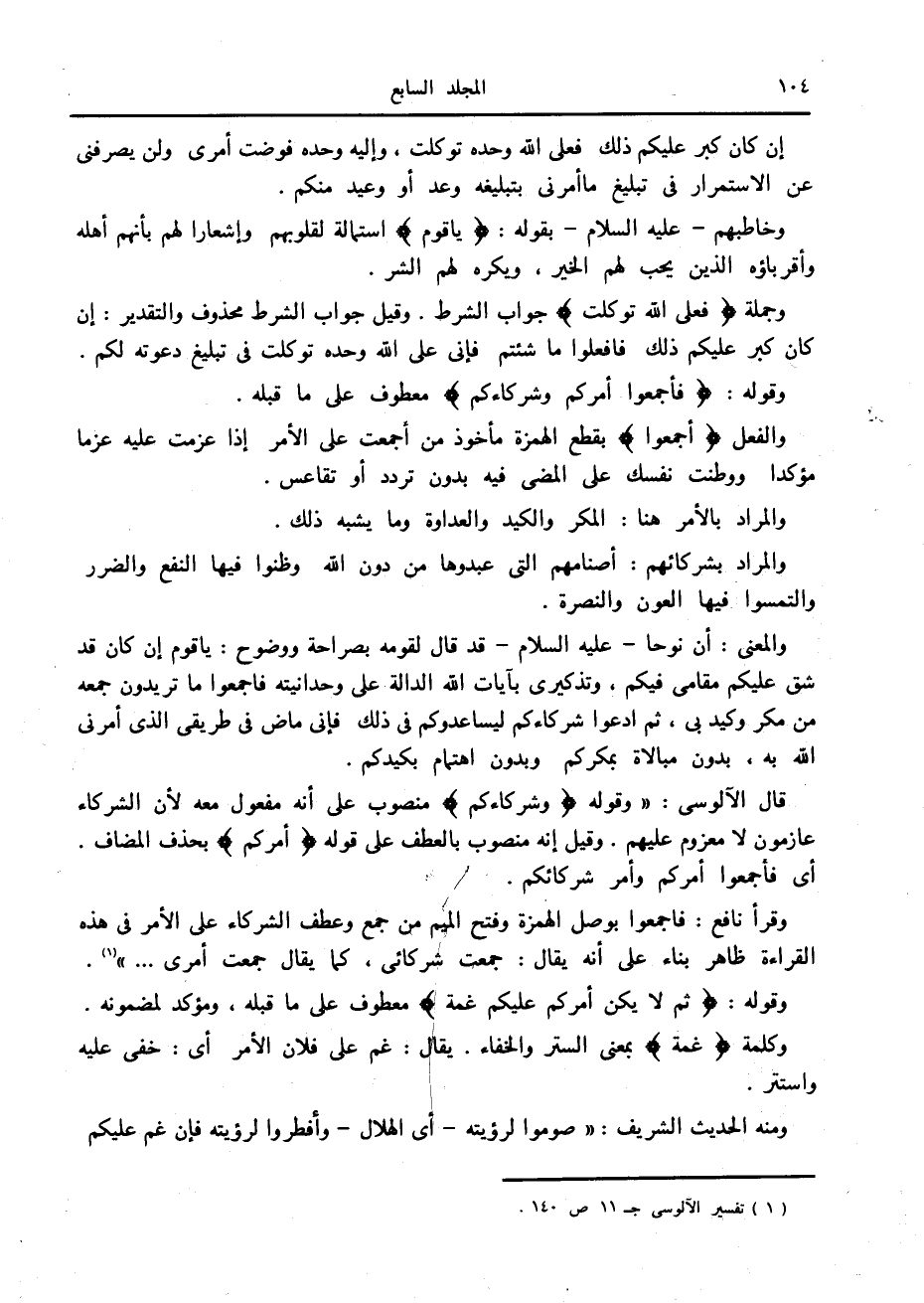 (1) تفسير الآلوسى ج 11 ص 140.