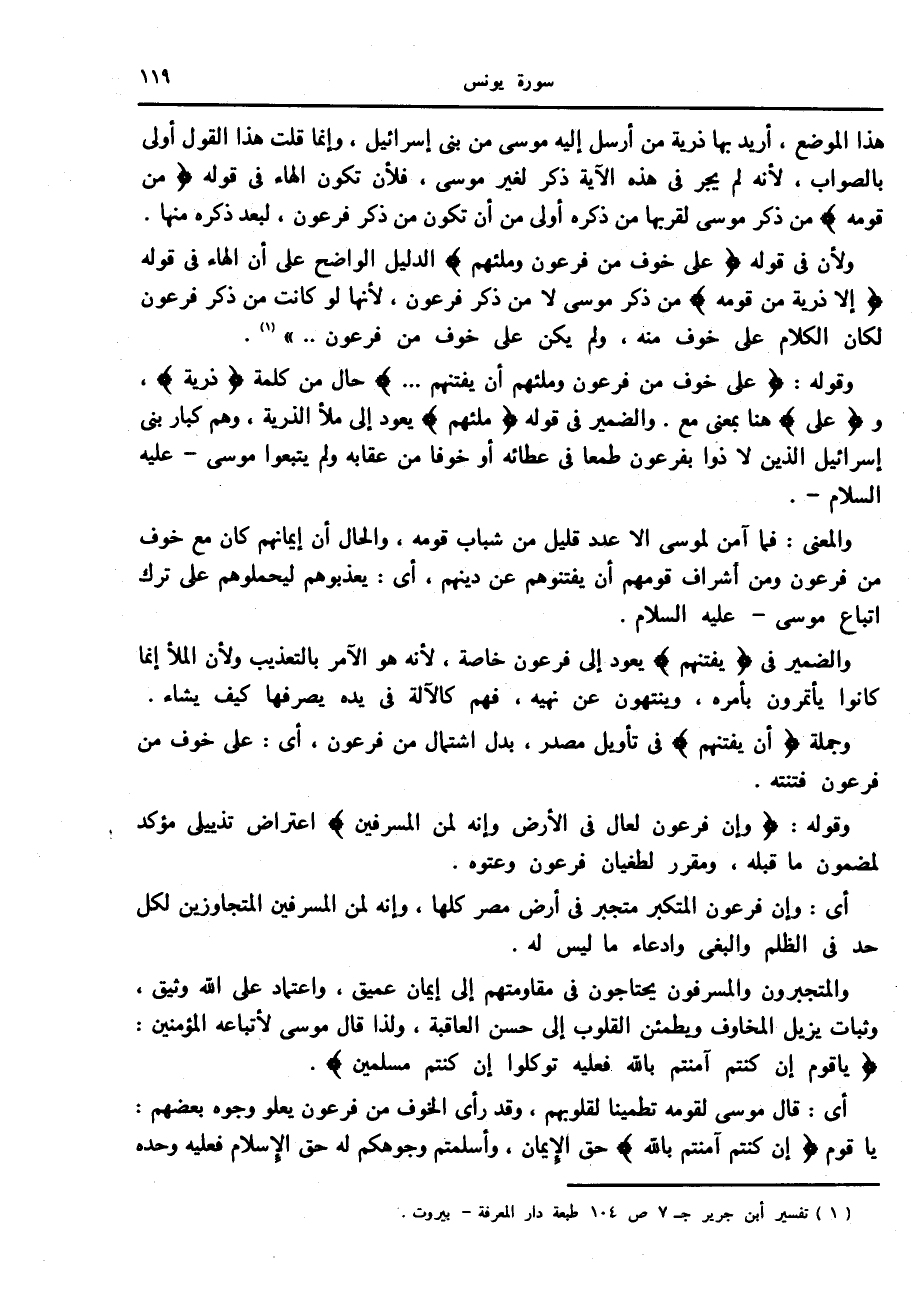 (1) تفسير أبن جرير ج 7 ص 104 طبعة دار المعرفة- بيروت.