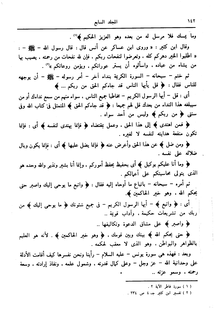 وبعد: فهذه هي سورة يونس- عليه السلام- رأينا ونحن نفسرها كيف أقامت الأدلة على وحدانية الله- عز وجل- وعلى كمال قدرته، وشمول علمه، ونفاذ إرادته، وسعة رحمته، وسمو عزته..