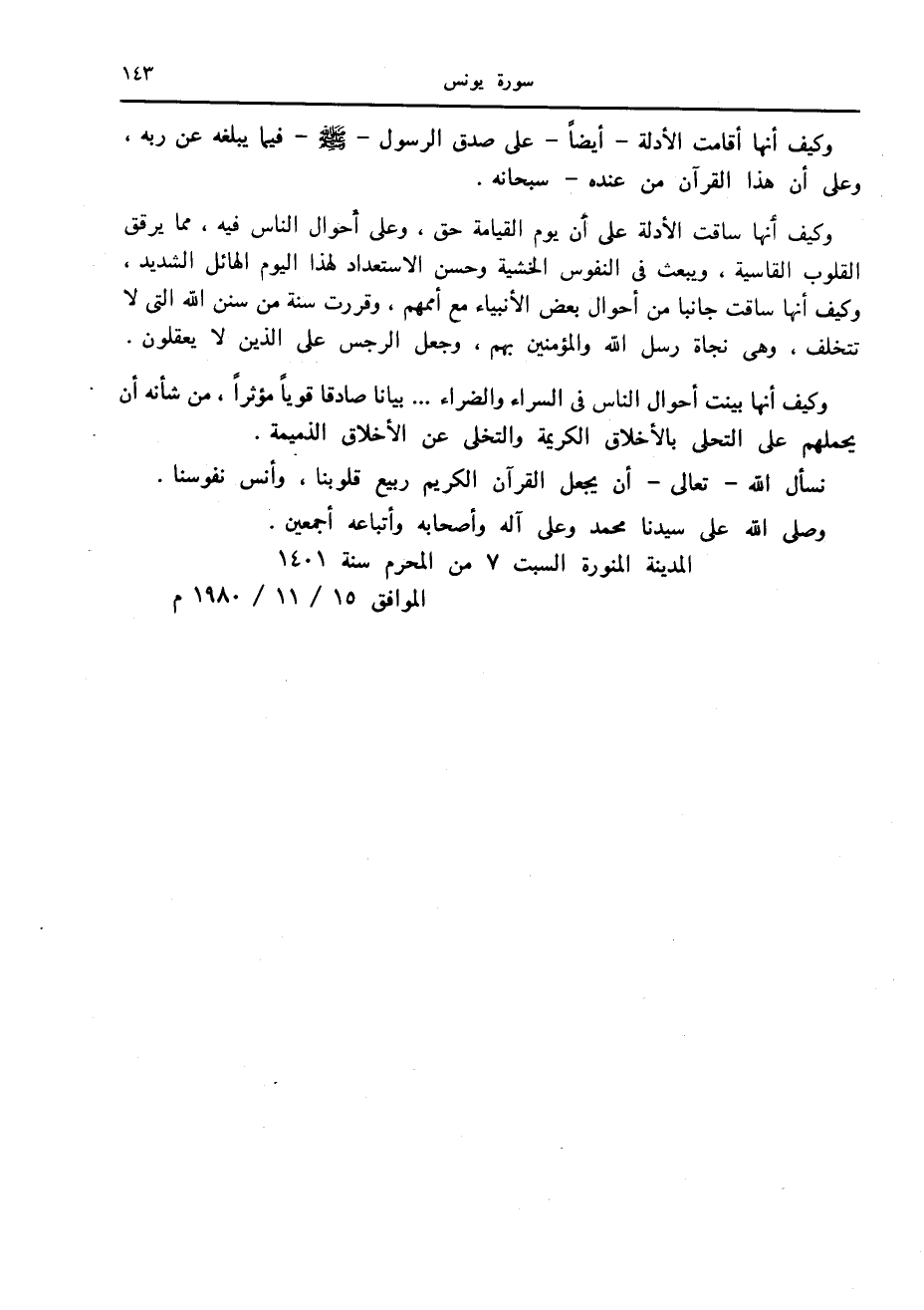 المدينة المنورة السبت 7 من المحرم سنة 1401 الموافق 15/ 11/ 1980 م