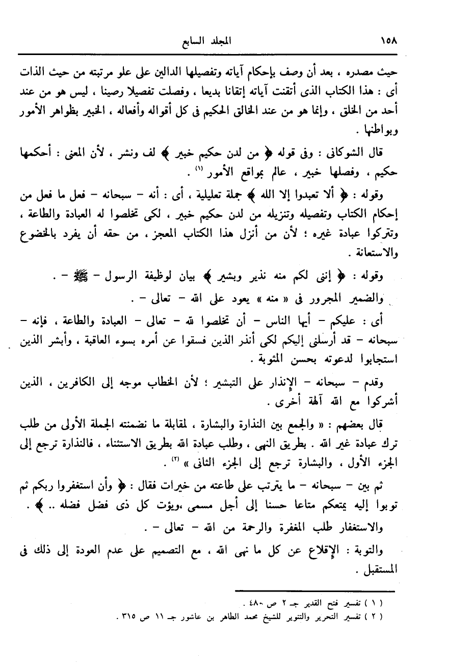 (2) تفسير التحرير والتنوير للشيخ محمد الطاهر بن عاشور ج 11 ص 315.