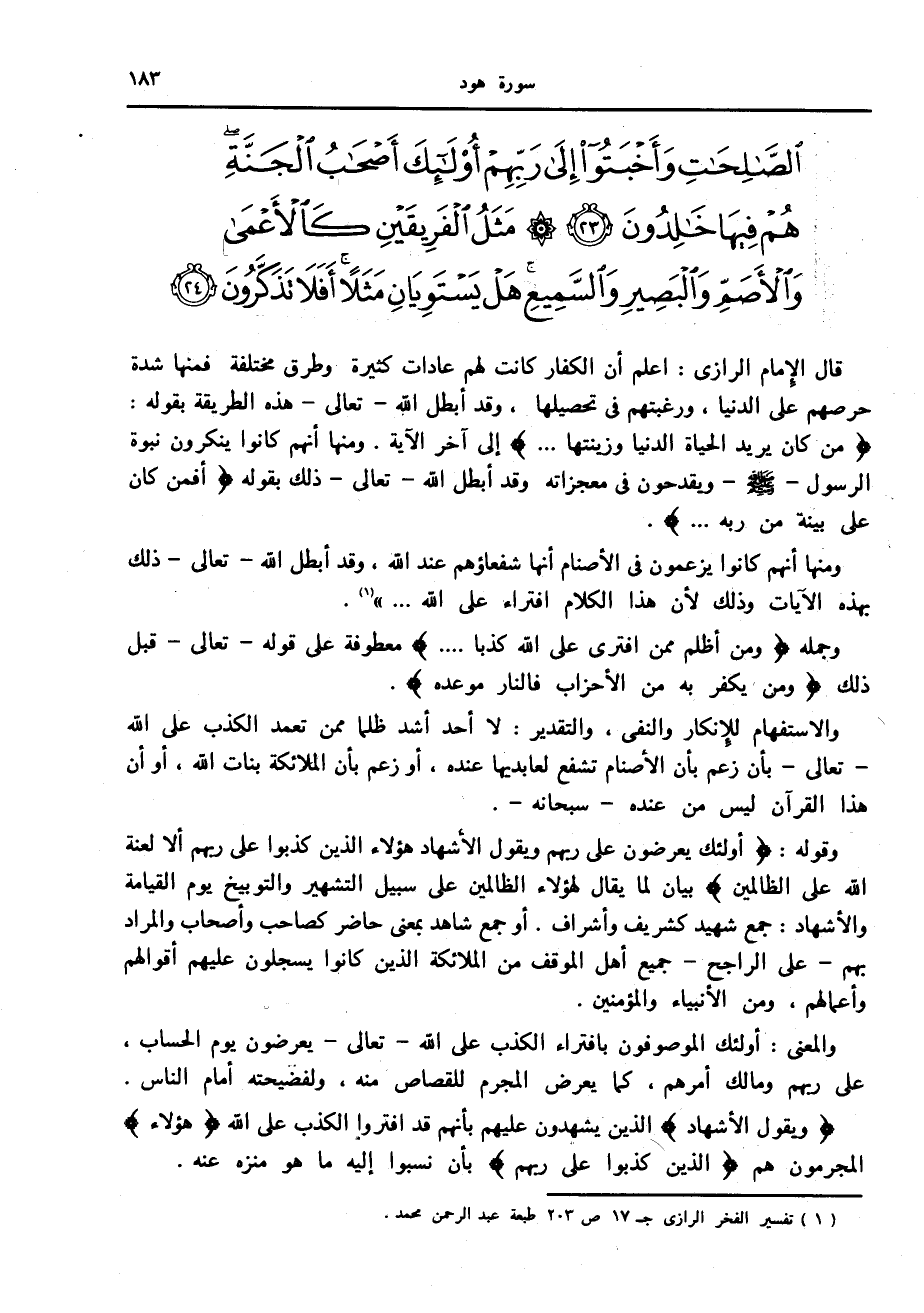 (1) تفسير الفخر الرازي ج 17 ص 203 طبعة عبد الرحمن محمد.