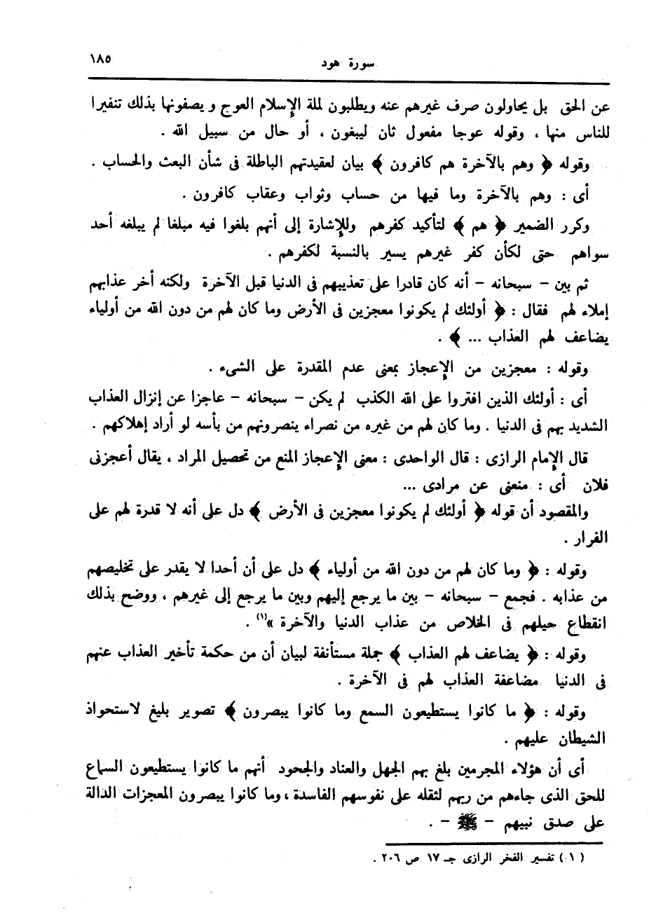 (1) تفسير الفخر الرازي ج 17 ص 206.