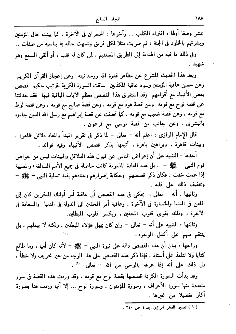 (1) تفسير الفخر الرازي ج 4 ص 240.