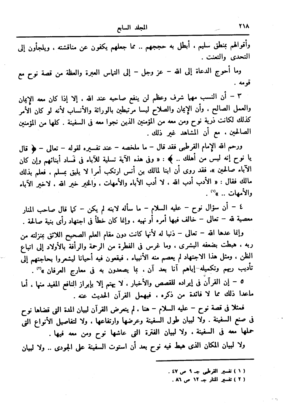 4- أن سؤال نوح- عليه السلام- ما سأله لابنه لم يكن- كما قال صاحب المنار معصية لله- تعالى- خالف فيها أمره أو نهيه، وإنما كان خطأ في اجتهاد رأى بنية صالحة.
