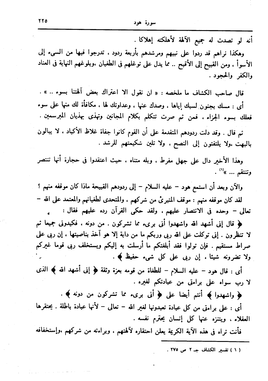 قالَ إِنِّي أُشْهِدُ اللَّهَ وَاشْهَدُوا أَنِّي بَرِيءٌ مِمَّا تُشْرِكُونَ. مِنْ دُونِهِ، فَكِيدُونِي جَمِيعاً ثُمَّ لا تُنْظِرُونِ. إِنِّي تَوَكَّلْتُ عَلَى اللَّهِ رَبِّي وَرَبِّكُمْ ما مِنْ دَابَّةٍ إِلَّا هُوَ آخِذٌ بِناصِيَتِها، إِنَّ رَبِّي عَلى صِراطٍ مُسْتَقِيمٍ. فَإِنْ تَوَلَّوْا فَقَدْ أَبْلَغْتُكُمْ ما أُرْسِلْتُ بِهِ إِلَيْكُمْ وَيَسْتَخْلِفُ رَبِّي قَوْماً غَيْرَكُمْ وَلا تَضُرُّونَهُ شَيْئاً، إِنَّ رَبِّي عَلى كُلِّ شَيْءٍ حَفِيظٌ.
