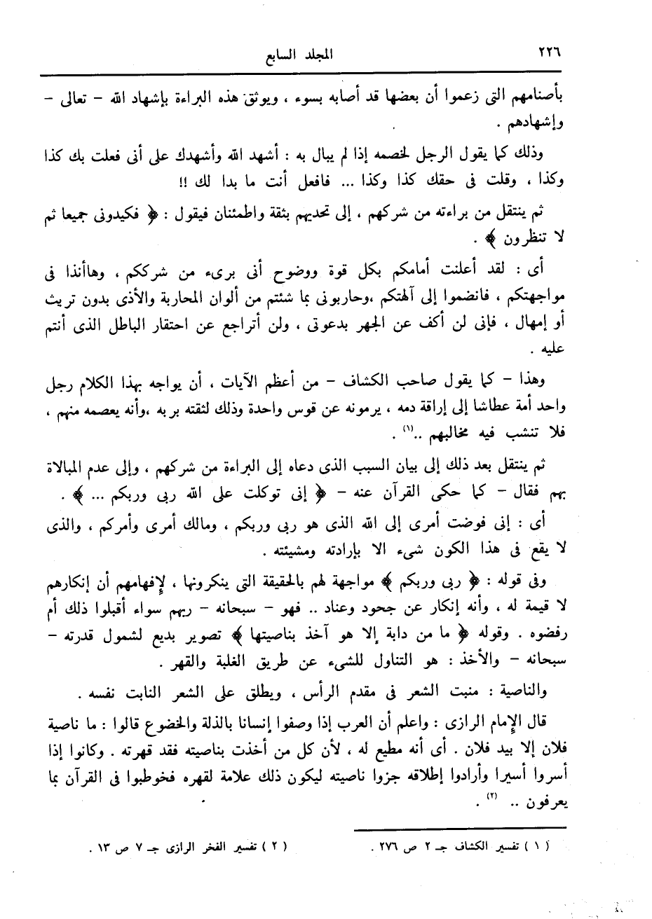 (2) تفسير الفخر الرازي ج 7 ص 13.
