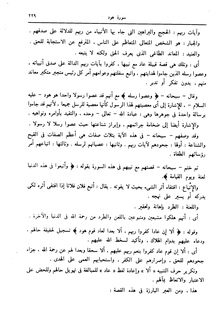 وقوله: أَلا إِنَّ عاداً كَفَرُوا رَبَّهُمْ، أَلا بُعْداً لِعادٍ قَوْمِ هُودٍ تسجيل لحقيقة حالهم، ودعاء عليهم بدوام الهلاك، وتأكيد لسخط الله عليهم.