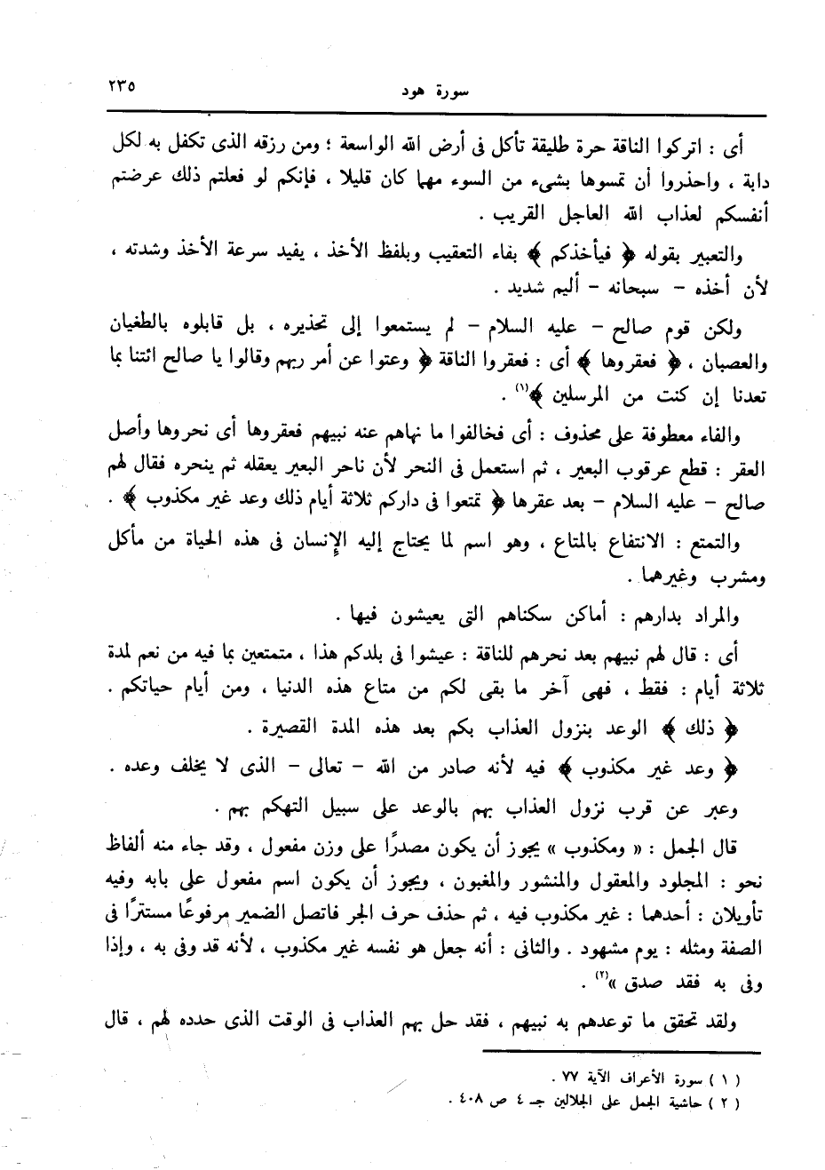 (2) حاشية الجمل على الجلالين ج 4 ص 408.