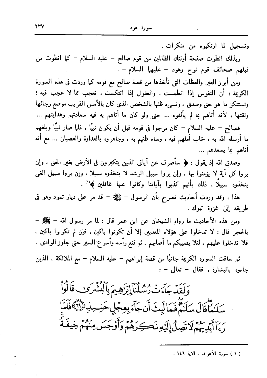 هذا، وقد وردت أحاديث تصرح بأن الرسول صلى الله عليه وسلم قد مر على ديار ثمود وهو في طريقه إلى غزوة تبوك.