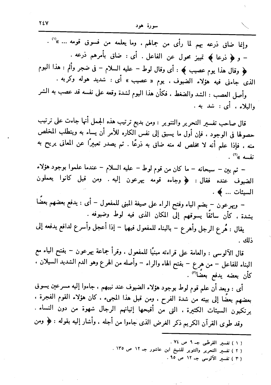 (2) تفسير التحرير والتنوير للشيخ ابن عاشور ج 12 ص 135.