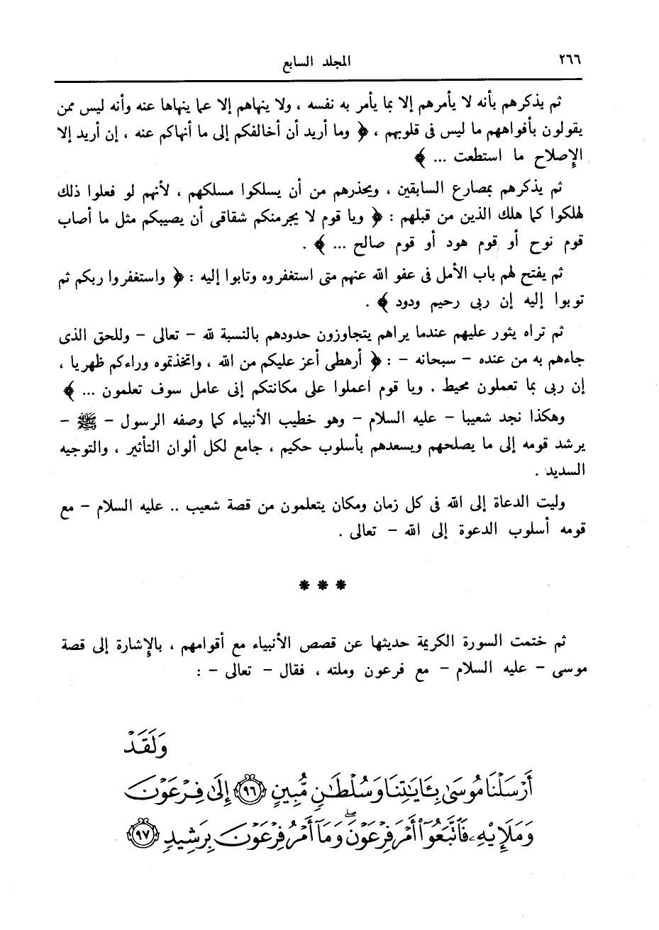 ثم ختمت السورة الكريمة حديثها عن قصص الأنبياء مع أقوامهم، بالإشارة إلى قصة موسى- عليه السلام- مع فرعون وملئه، فقال- تعالى-: