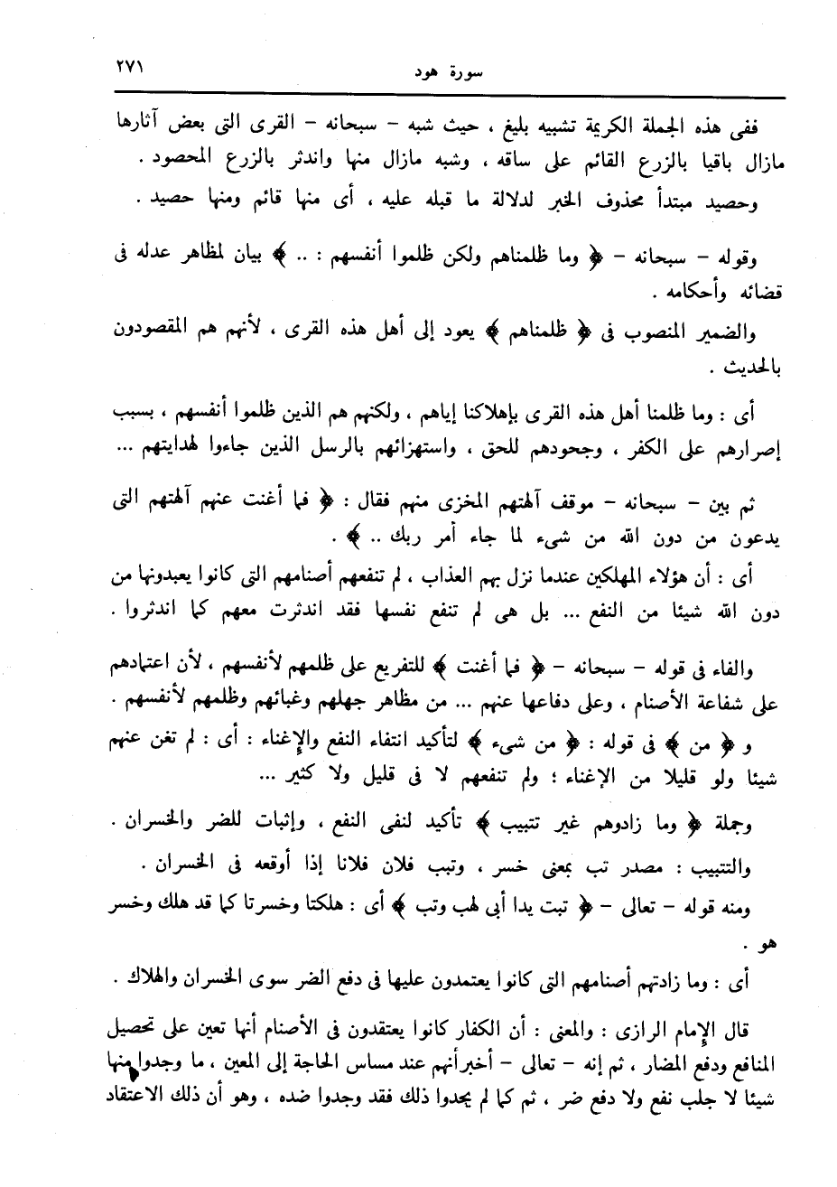 ففي هذه الجملة الكريمة تشبيه بليغ، حيث شبه- سبحانه- القرى التي بعض آثارها ما يزال باقيا بالزرع القائم على ساقه، وشبه ما زال منها واندثر بالزرع المحصود.