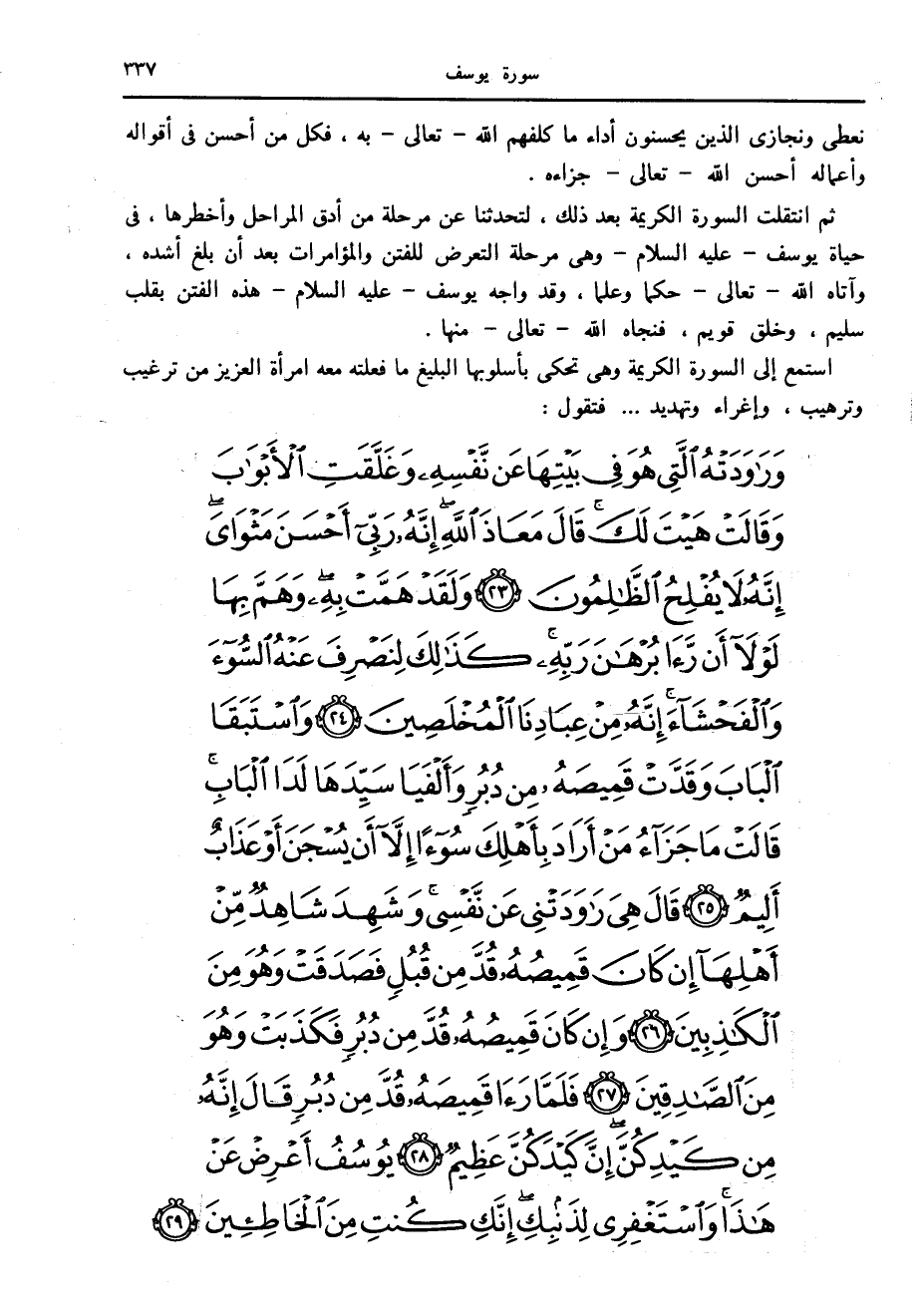 استمع إلى السورة الكريمة وهي تحكى بأسلوبها البليغ ما فعلته معه امرأة العزيز من ترغيب وترهيب، وإغراء وتهديد ... فتقول: