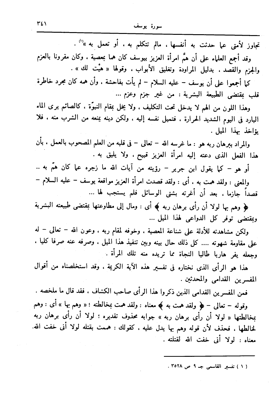 وَهَمَّ بِها لَوْلا أَنْ رَأى بُرْهانَ رَبِّهِ أى: ومال إلى مطاوعتها بمقتضى طبيعته البشرية وبمقتضى توفر كل الدواعي لهذا الميل ...