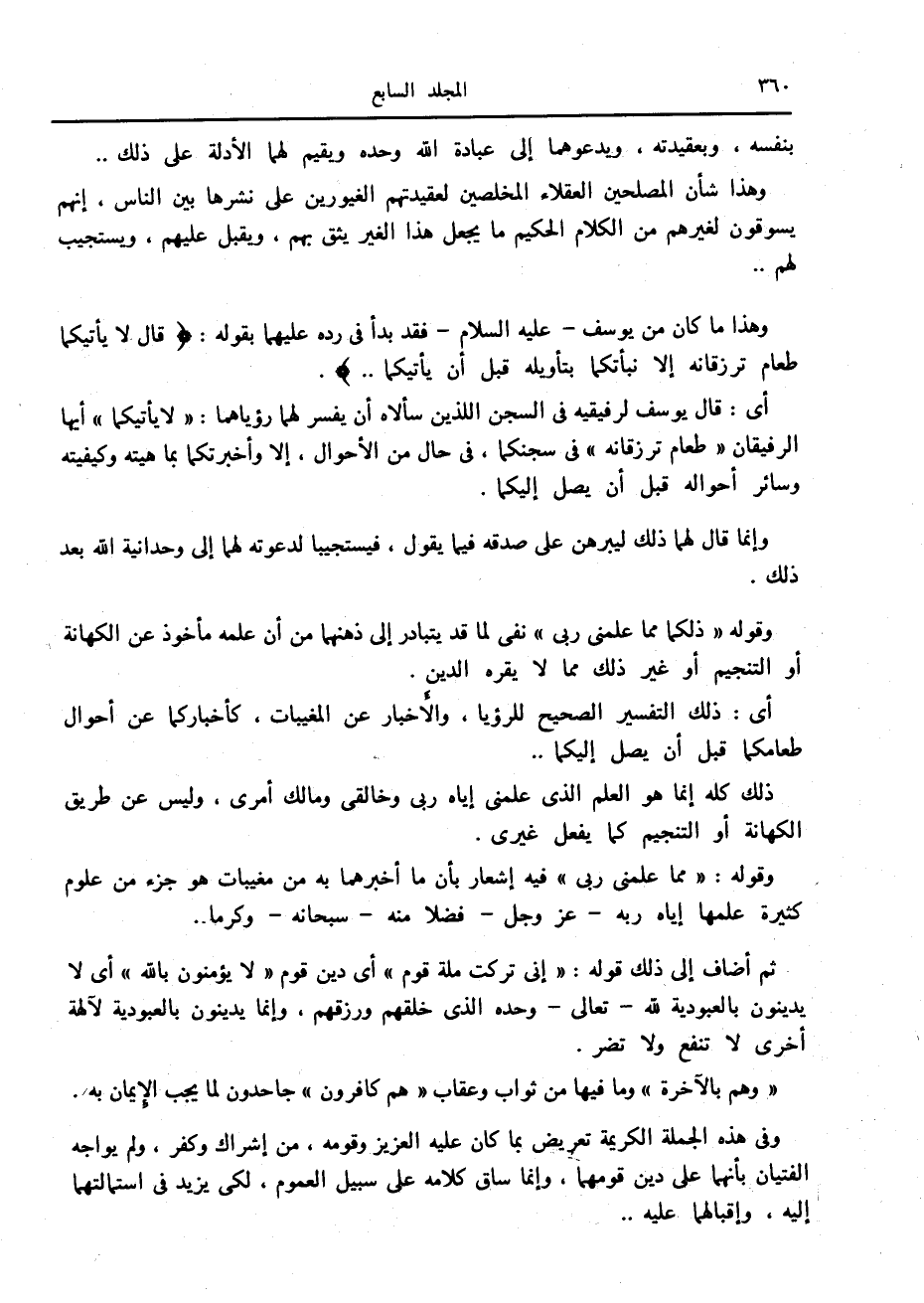 وقوله «ذلكما مما علمني ربي» نفى لما قد يتبادر إلى ذهنهما من أن علمه مأخوذ عن الكهانة أو التنجيم أو غير ذلك مما لا يقره الدين.
