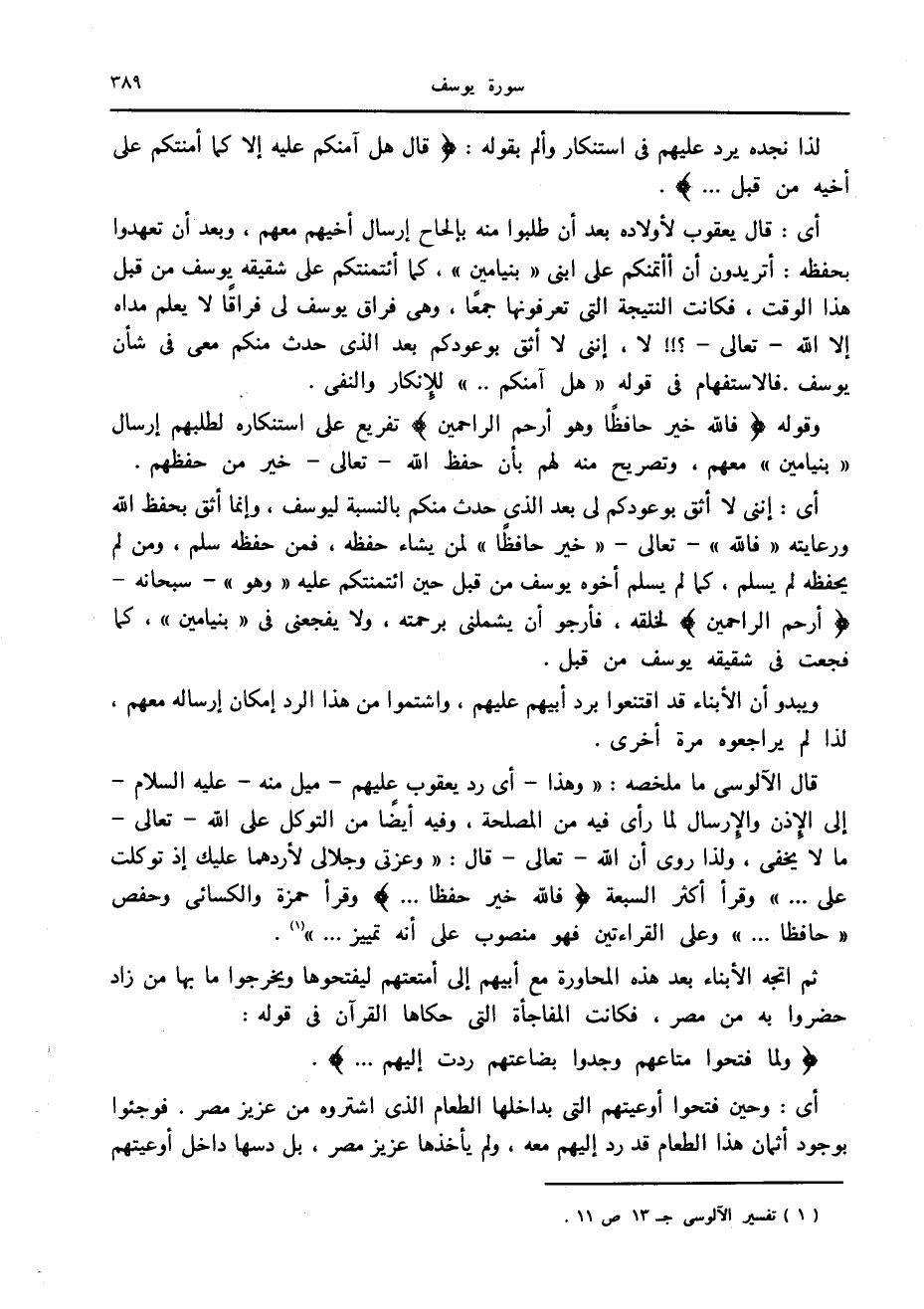 (1) تفسير الآلوسى ج 13 ص 11.