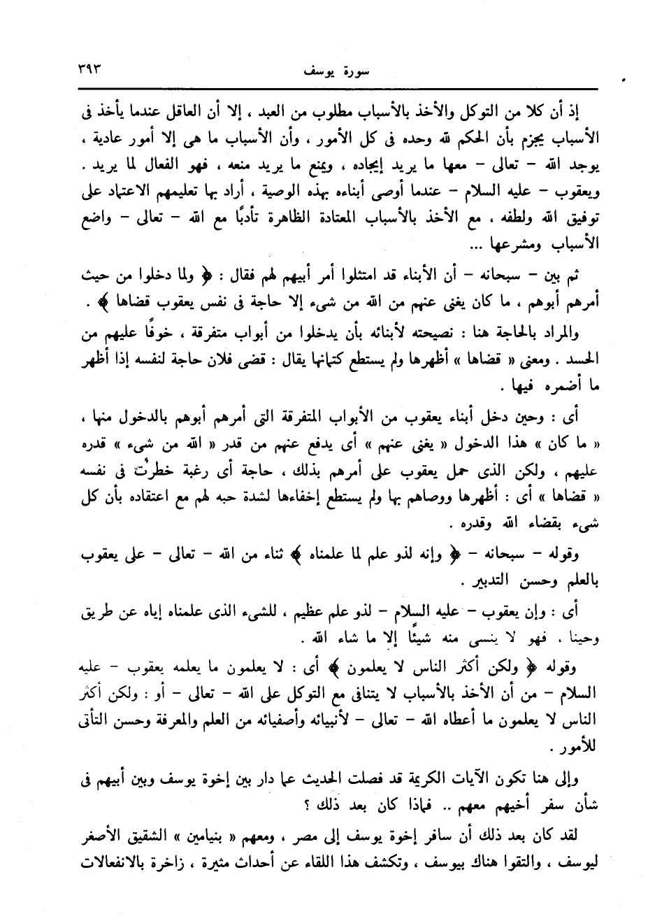 ويعقوب- عليه السلام- عند ما أوصى أبناءه بهذه الوصية، أراد بها تعليمهم الاعتماد على توفيق الله ولطفه، مع الأخذ بالأسباب المعتادة الظاهرة تأدبا مع الله- تعالى- واضع الأسباب ومشرعها ...