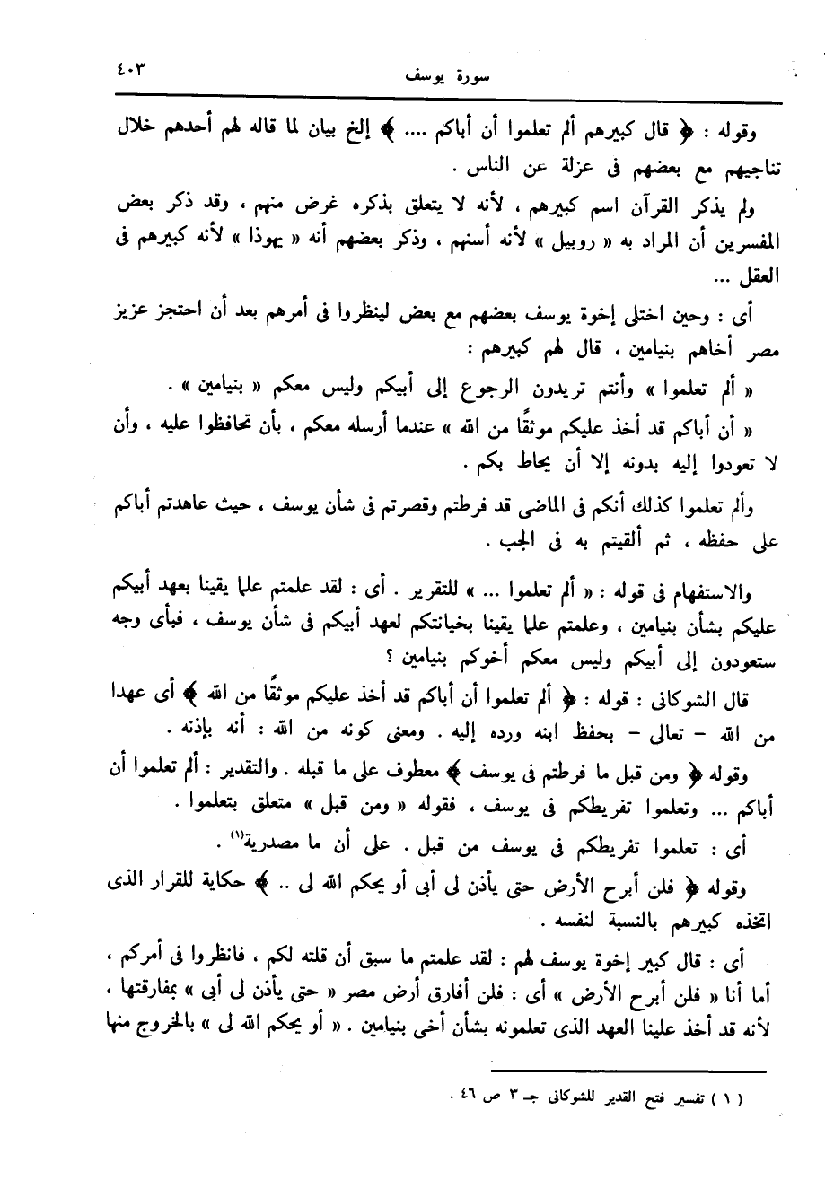 (1) تفسير فتح القدير للشوكانى ج 3 ص 46.