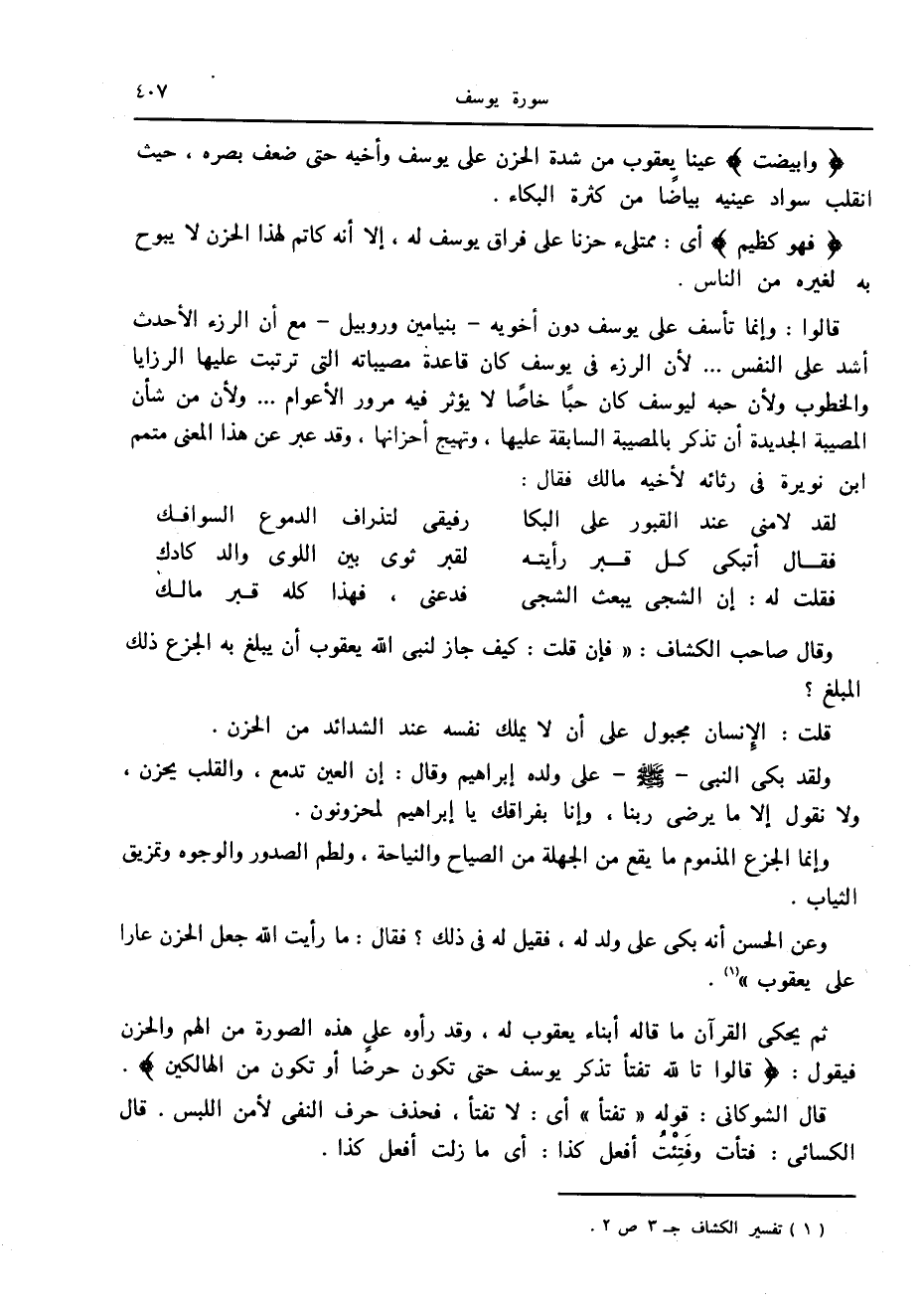 وقال صاحب الكشاف: «فإن قلت: كيف جاز لنبي الله يعقوب أن يبلغ به الجزع ذلك المبلغ؟
