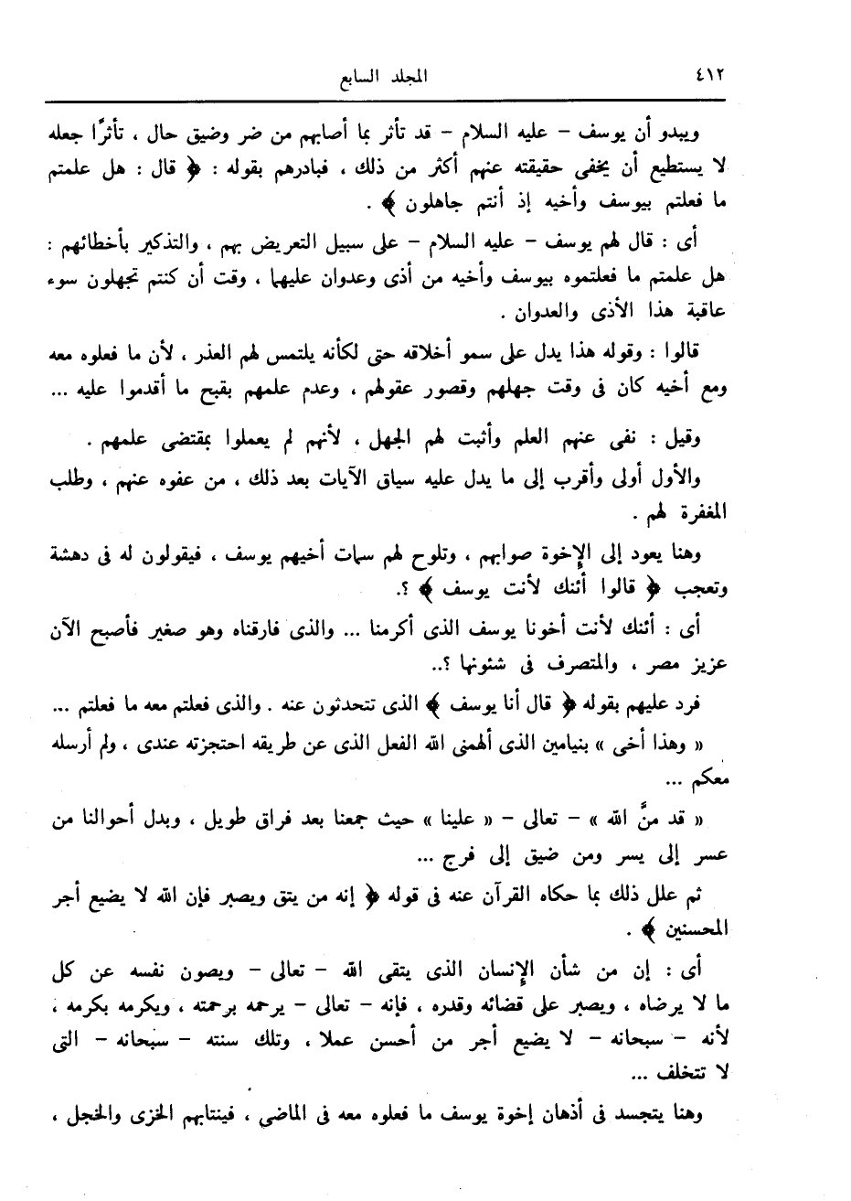 قالوا: وقوله هذا يدل على سمو أخلاقه حتى لكأنه يلتمس لهم العذر، لأن ما فعلوه معه ومع أخيه كان في وقت جهلهم وقصور عقولهم، وعدم علمهم بقبح ما أقدموا عليه ...