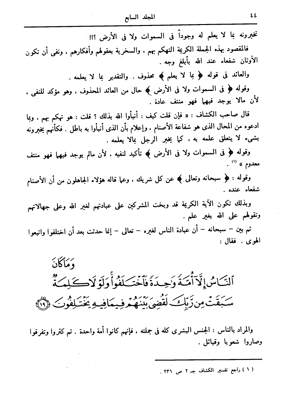 (1) راجع تفسير الكشاف ج 2 ص 231.