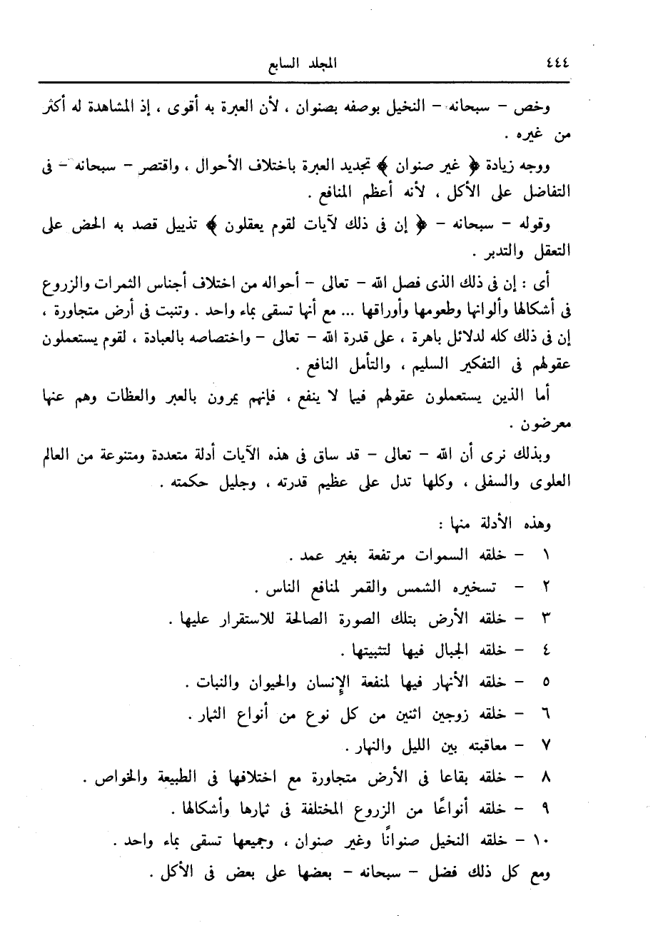 وخص- سبحانه- النخيل بوصفه بصنوان، لأن العبرة به أقوى، إذ المشاهدة له أكثر من غيره.