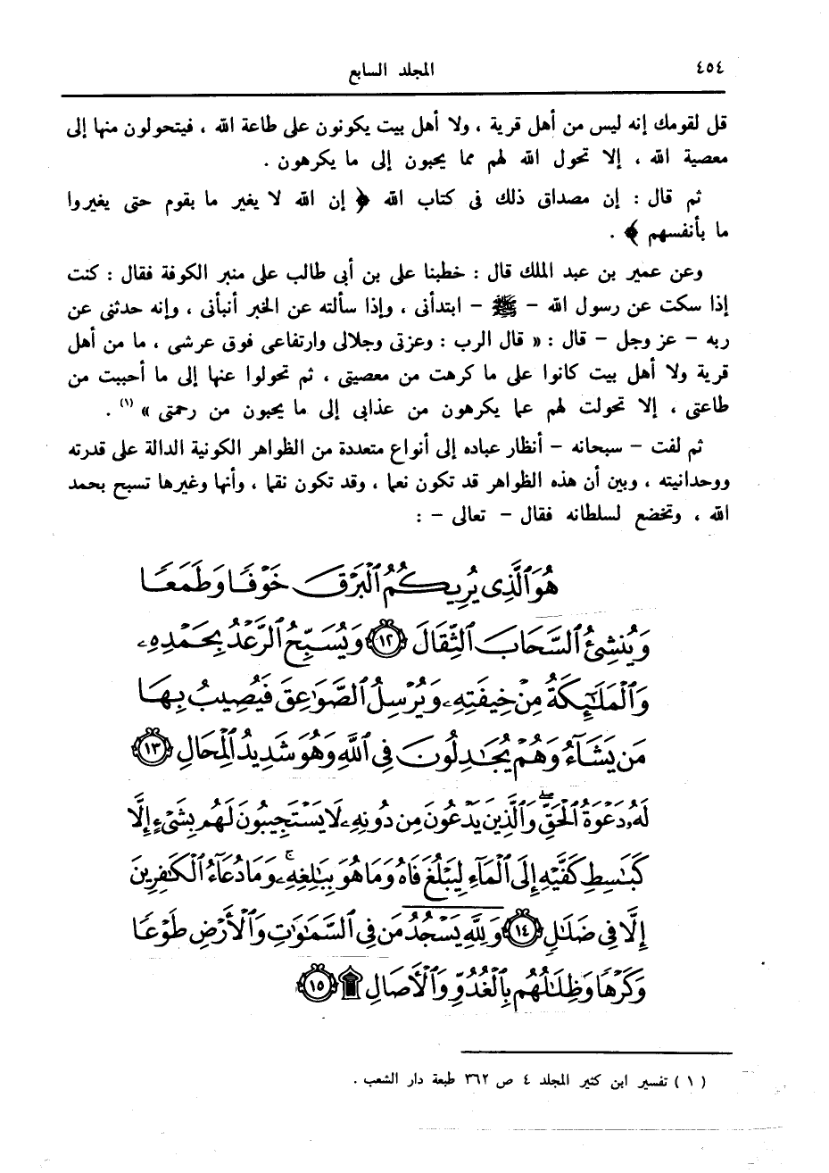 ثم قال: إن مصداق ذلك في كتاب الله إِنَّ اللَّهَ لا يُغَيِّرُ ما بِقَوْمٍ حَتَّى يُغَيِّرُوا ما بِأَنْفُسِهِمْ.