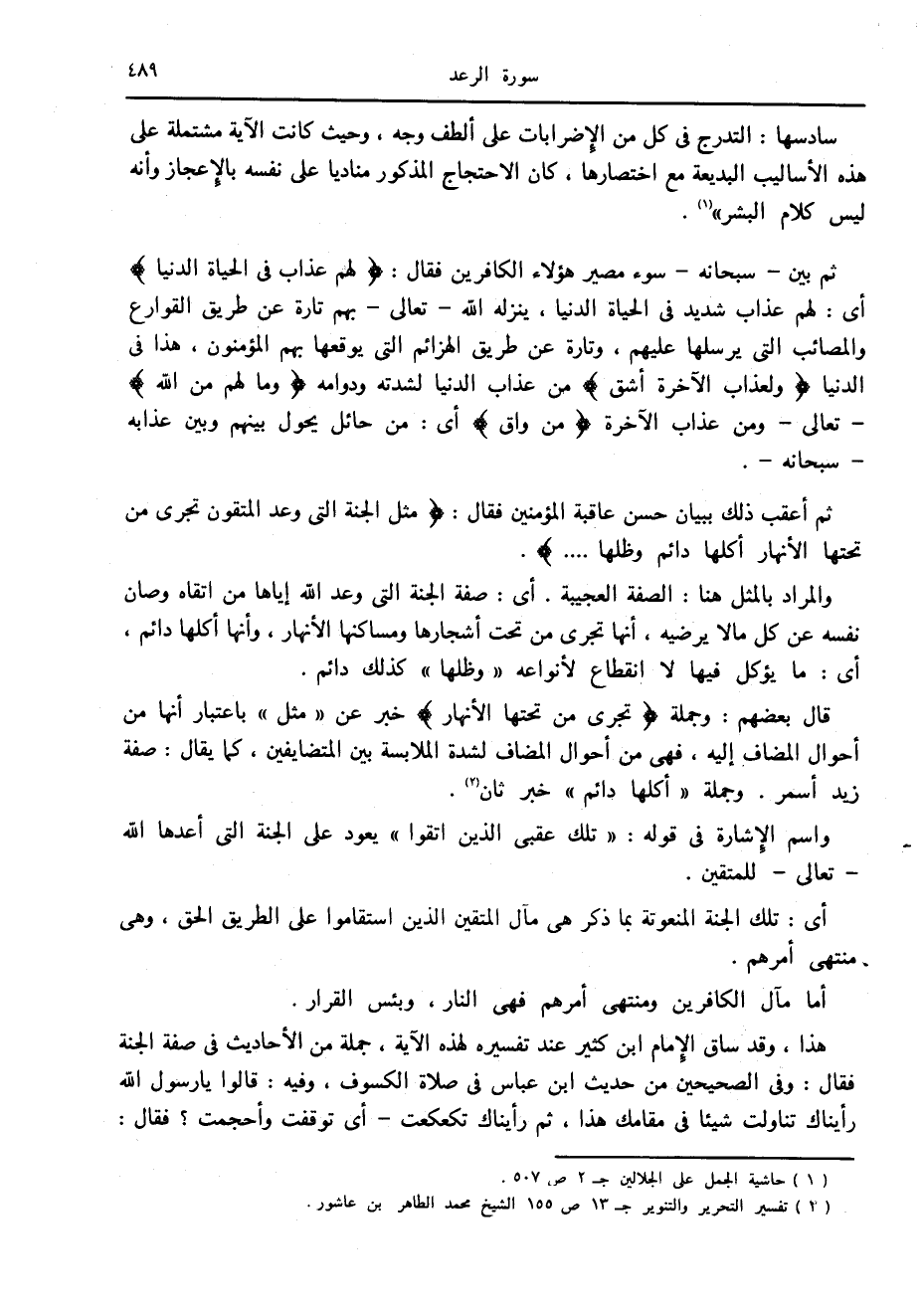 (2) تفسير التحرير والتنوير ج 13 ص 155 الشيخ محمد الطاهر بن عاشور.