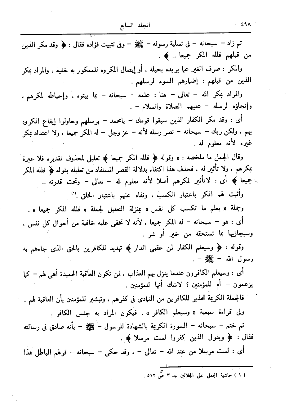 (1) حاشية الجمل على الجلالين ج 3 ص 512.