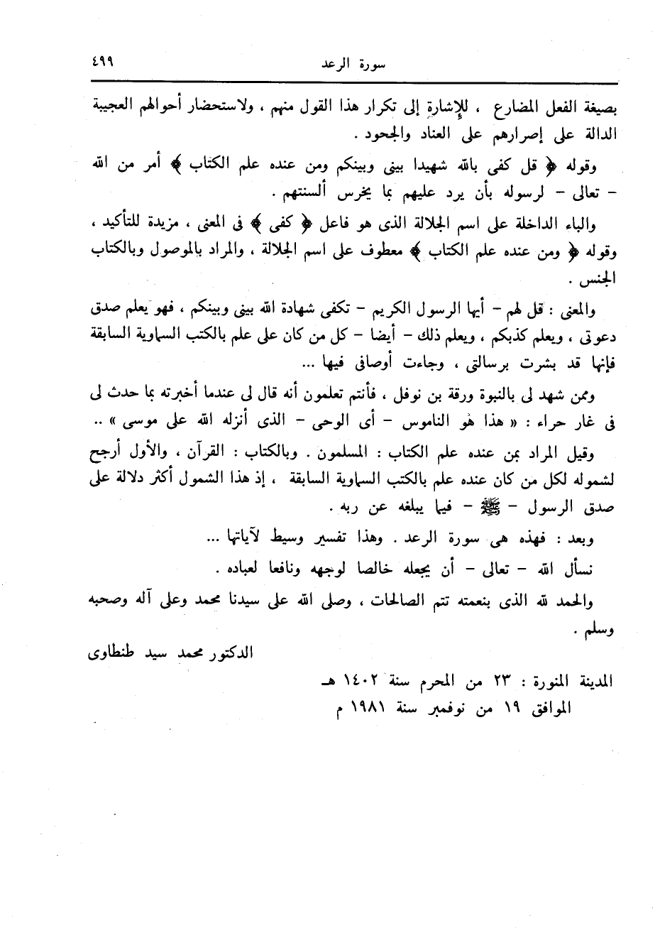 الدكتور محمد سيد طنطاوى المدينة المنورة: 23 من المحرم سنة 1402 هـ الموافق 19 من نوفمبر سنة 1981 م