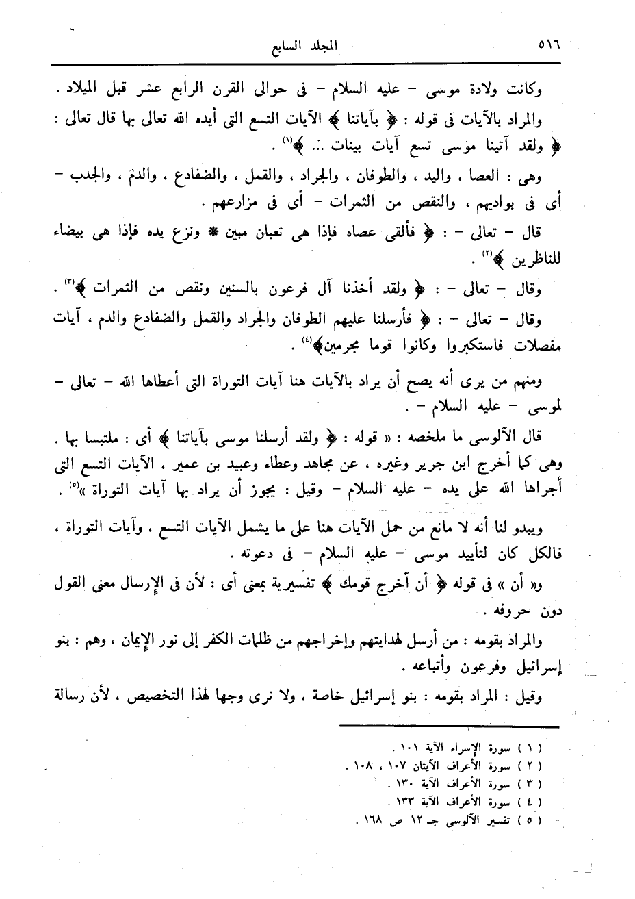 وَلَقَدْ آتَيْنا مُوسى تِسْعَ آياتٍ بَيِّناتٍ ... «1» .
