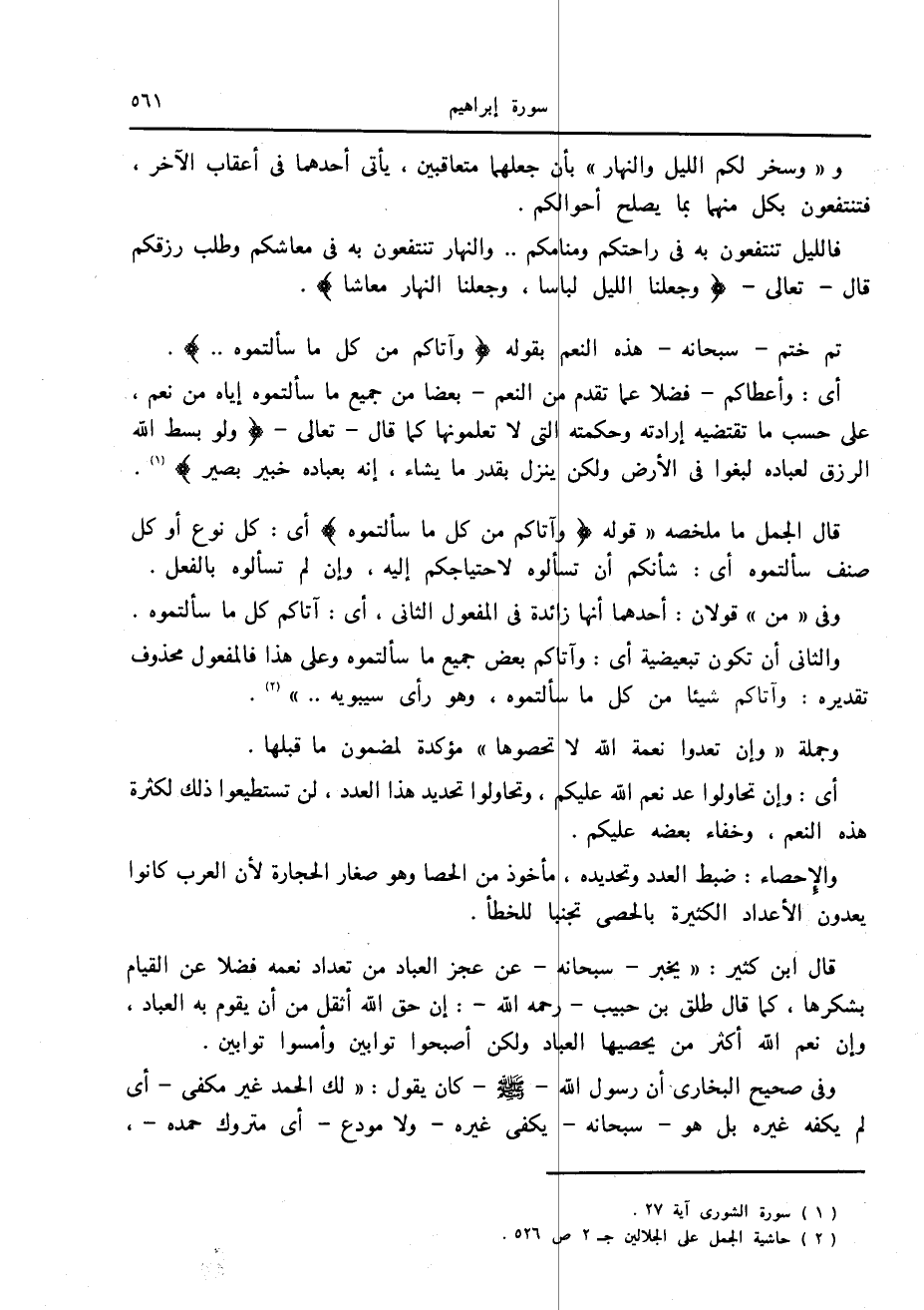 (2) حاشية الجمل على الجلالين ج 2 ص 526.