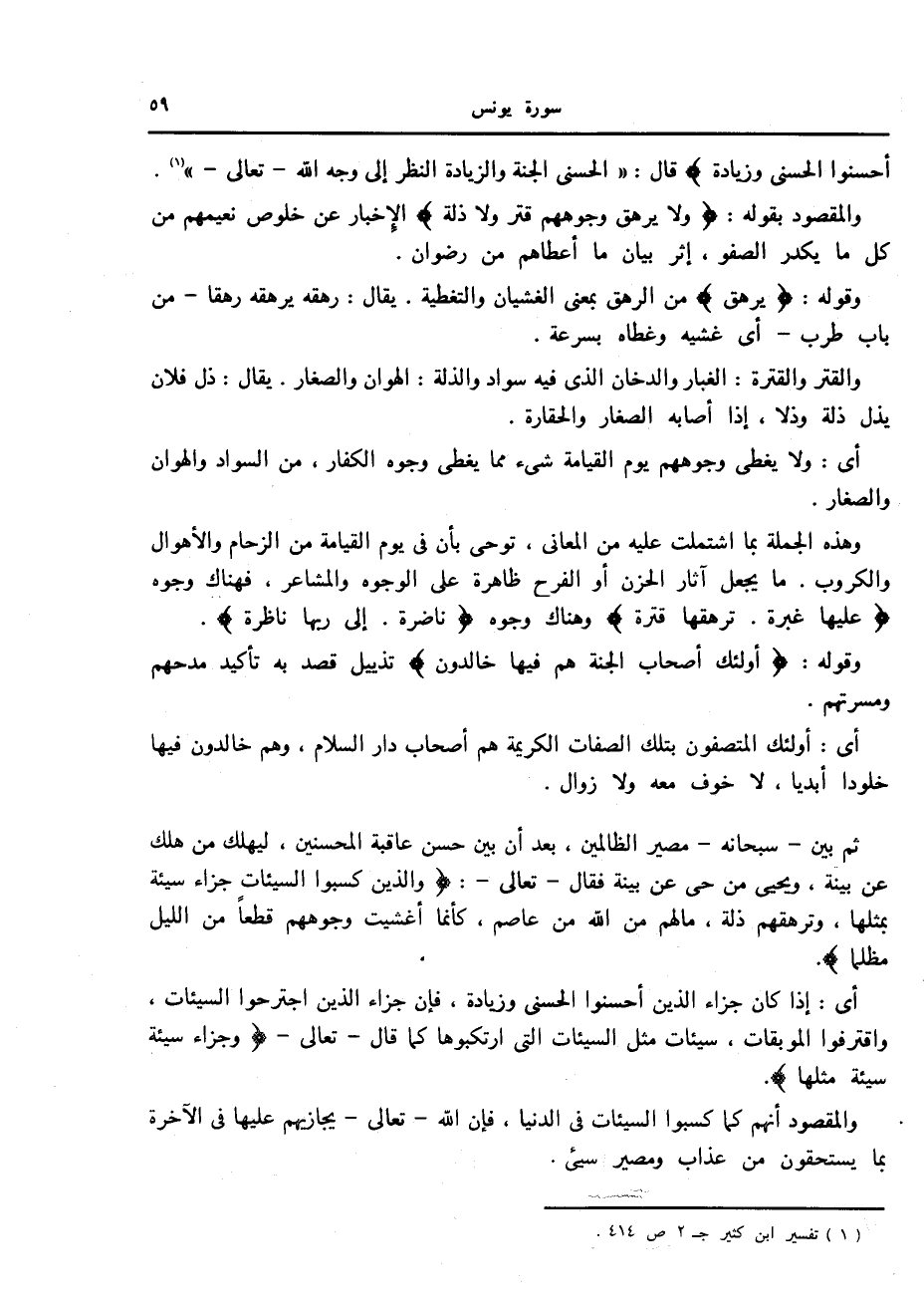 أَحْسَنُوا الْحُسْنى وَزِيادَةٌ قال: «الحسنى الجنة والزيادة النظر إلى وجه الله- تعالى-» «1» .